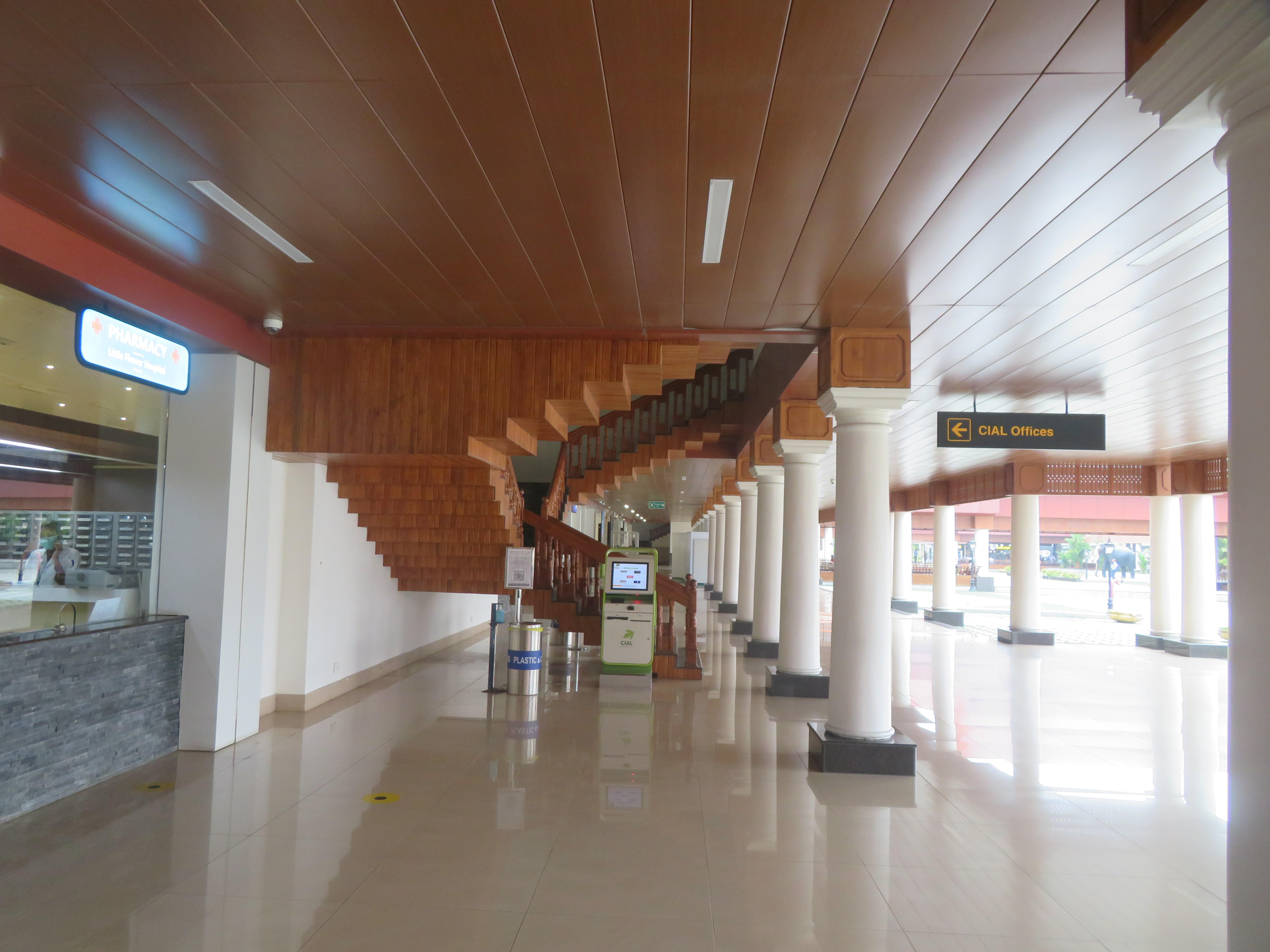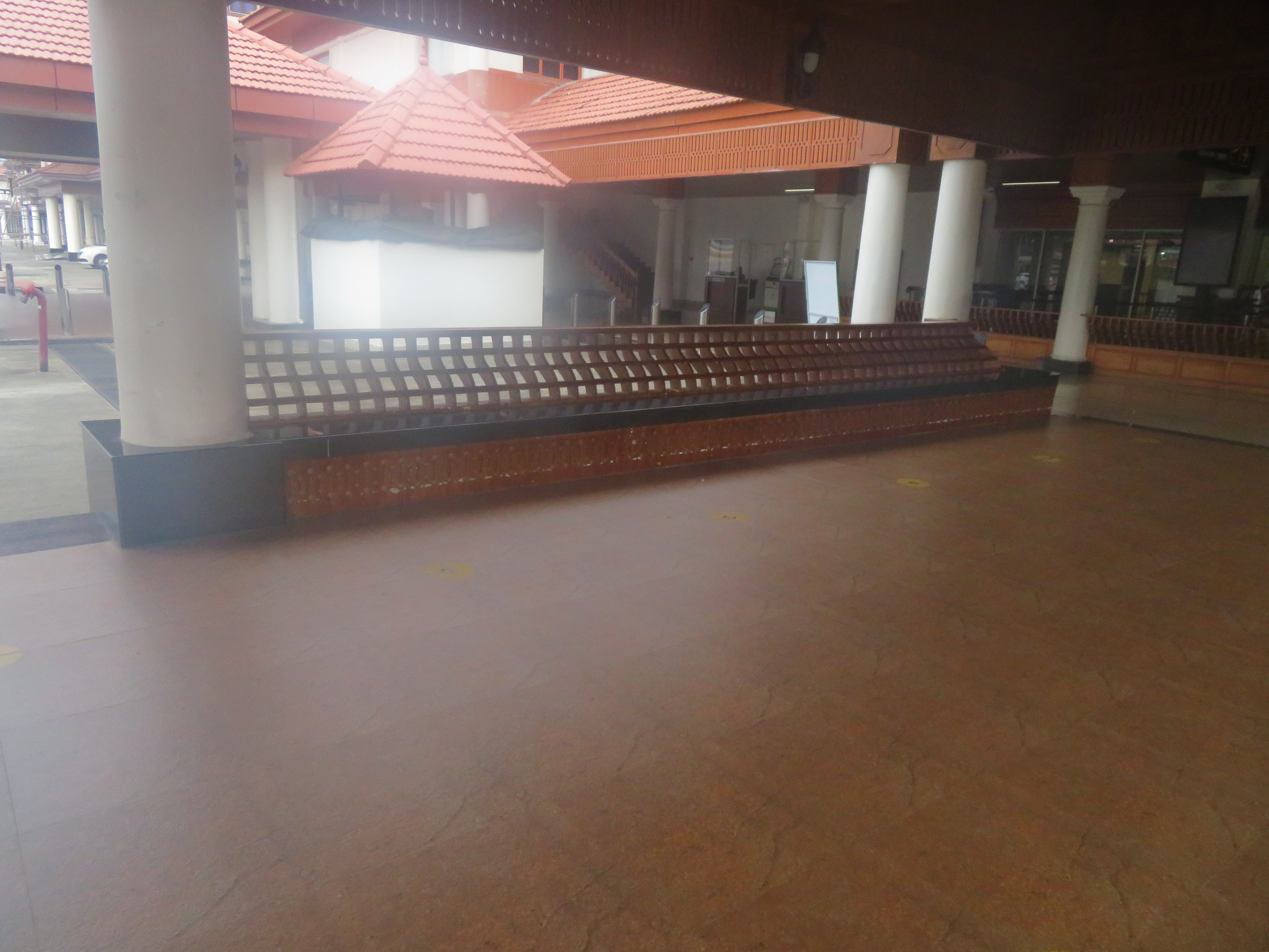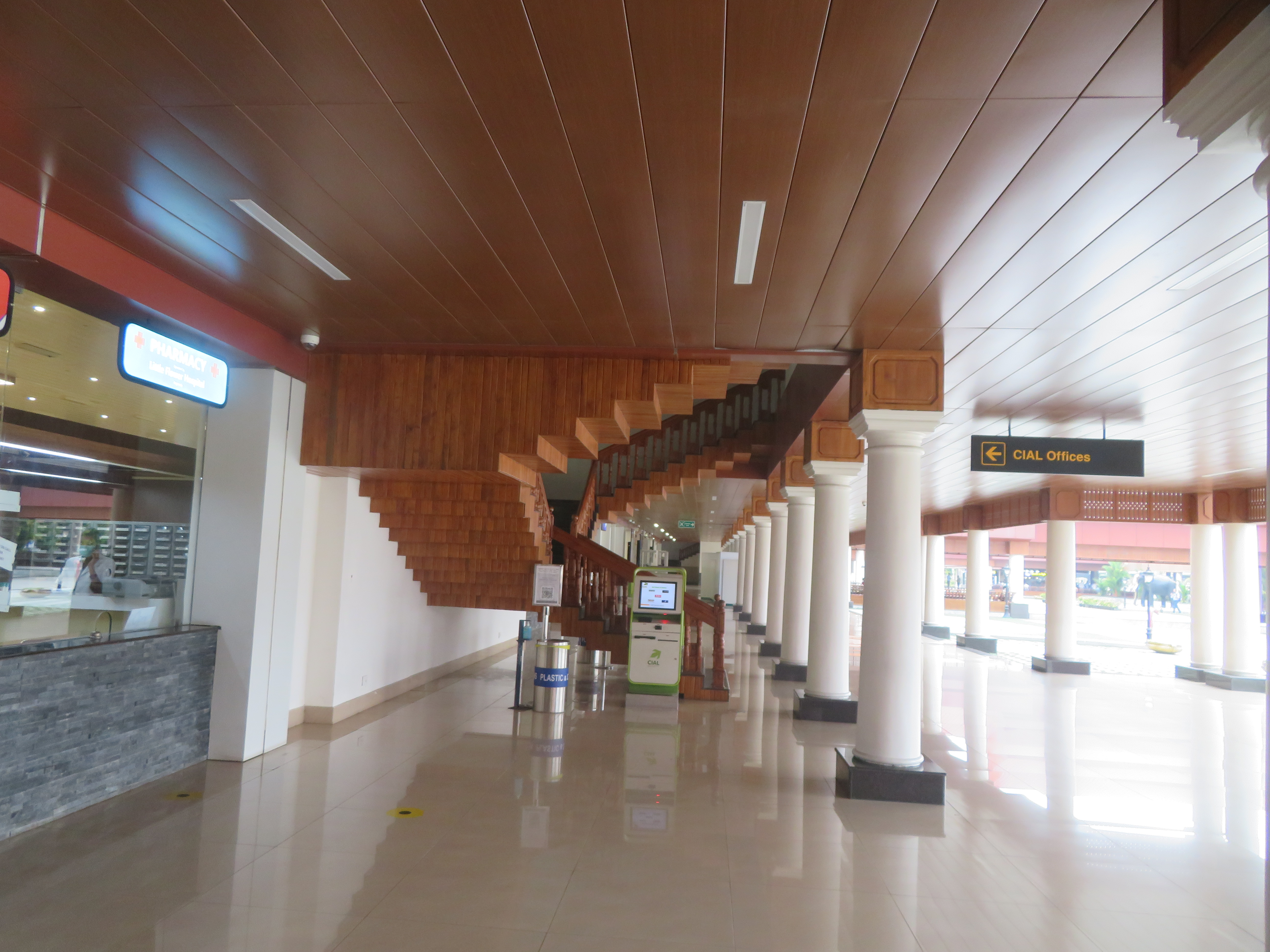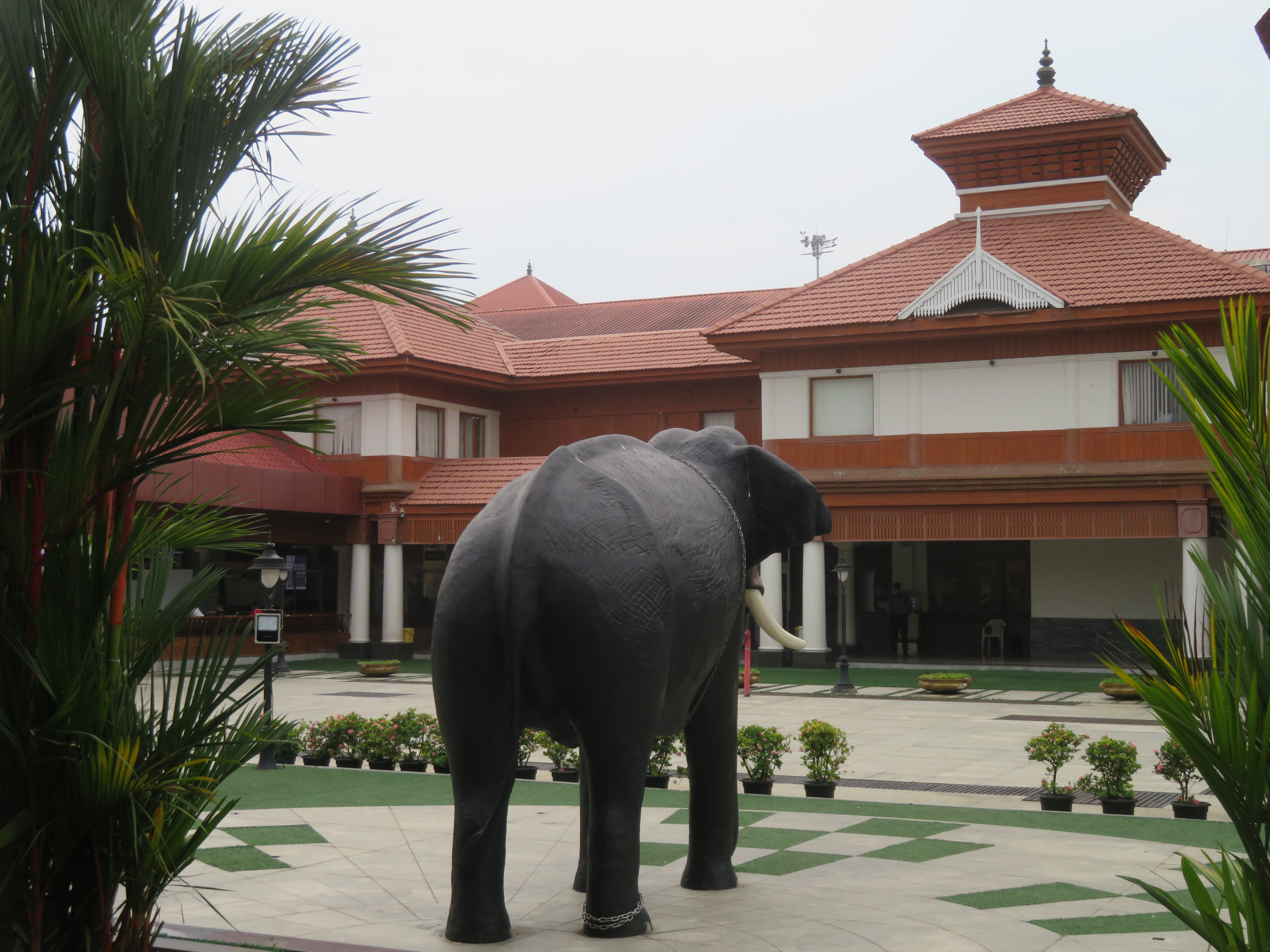 I was at the Domestic terminal, as my flight was Kochi → Bangalore → Amsterdam → Mexico. I arrived quite early, as I left the hotel around 14:00 (because of checkout time); the terminal seems to be active later in the evening. We could not enter the terminal building until it was only four hours to the departure time, so I had the opportunity to walk around, take some photos, and finally sit down and read a bit before entering.