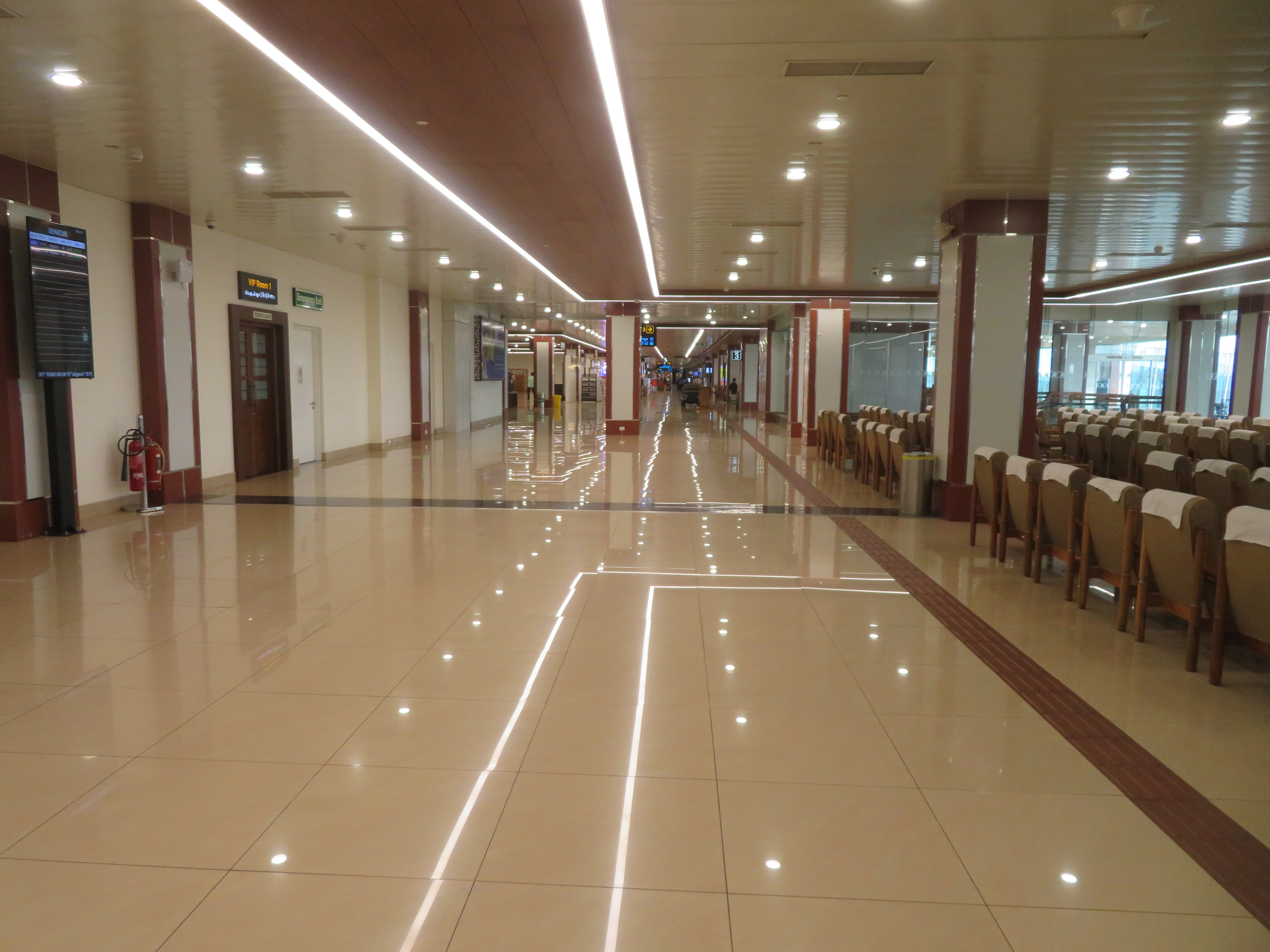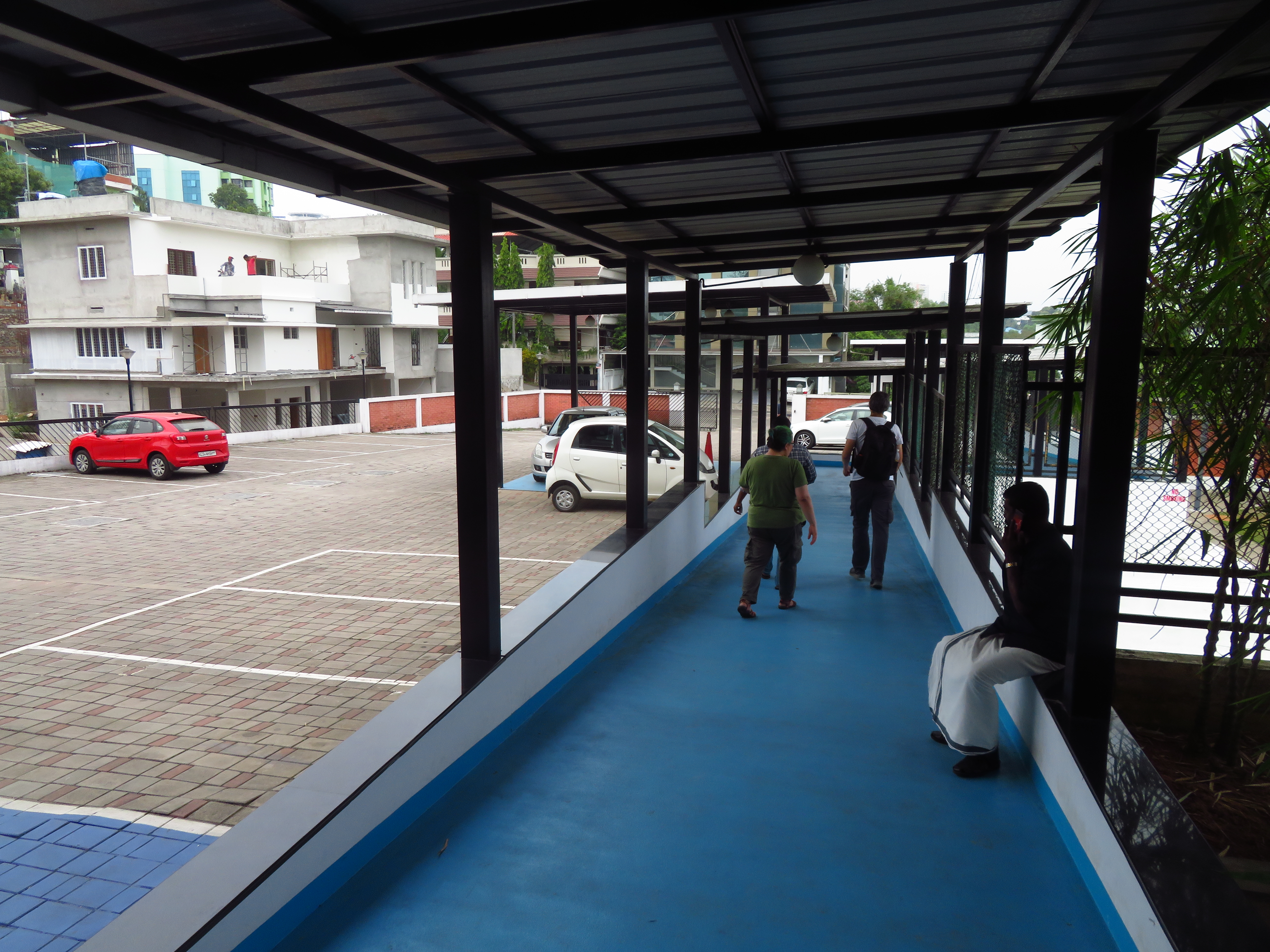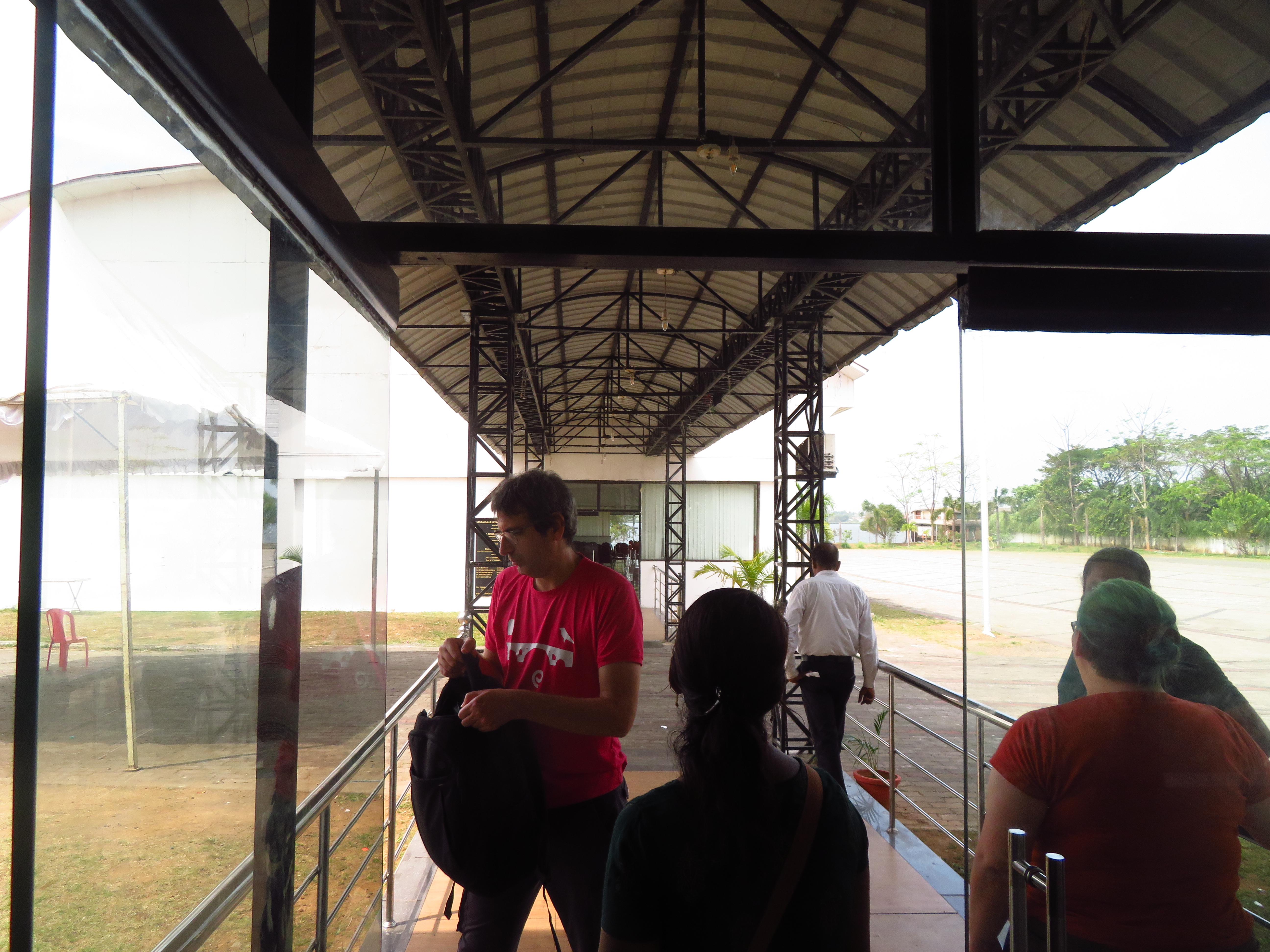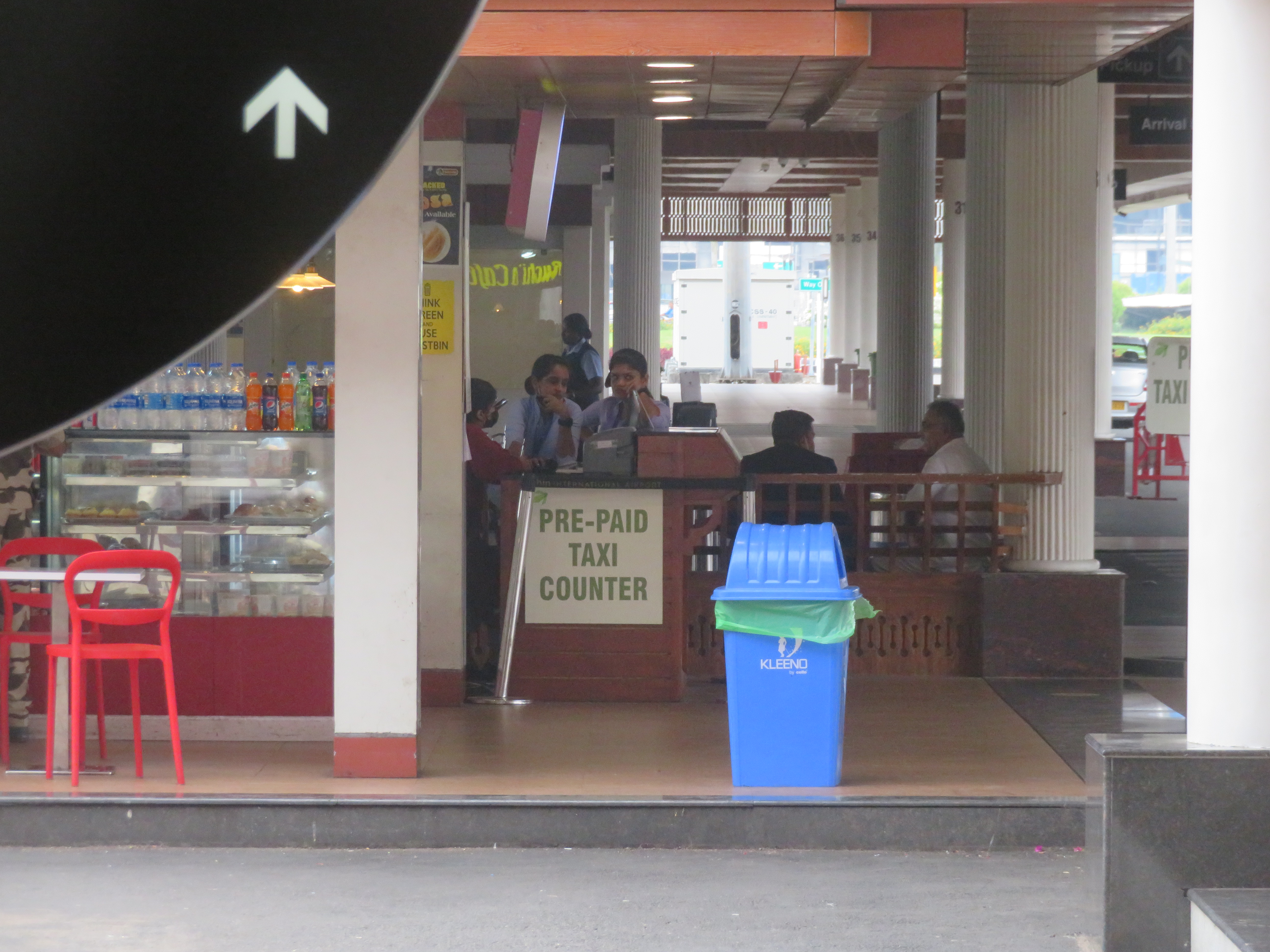 I was at the Domestic terminal, as my flight was Kochi → Bangalore → Amsterdam → Mexico. I arrived quite early, as I left the hotel around 14:00 (because of checkout time); the terminal seems to be active later in the evening. We could not enter the terminal building until it was only four hours to the departure time, so I had the opportunity to walk around, take some photos, and finally sit down and read a bit before entering.