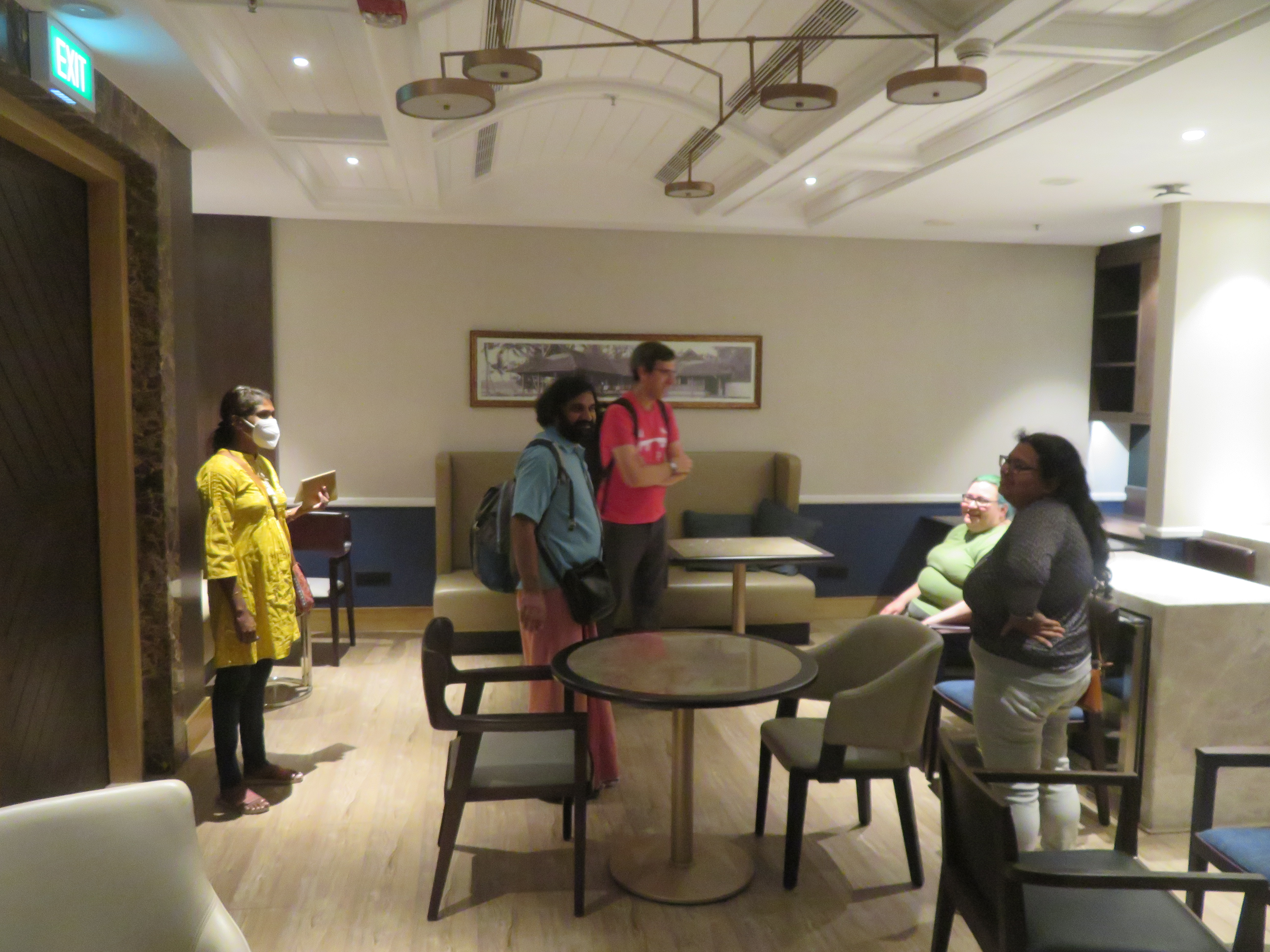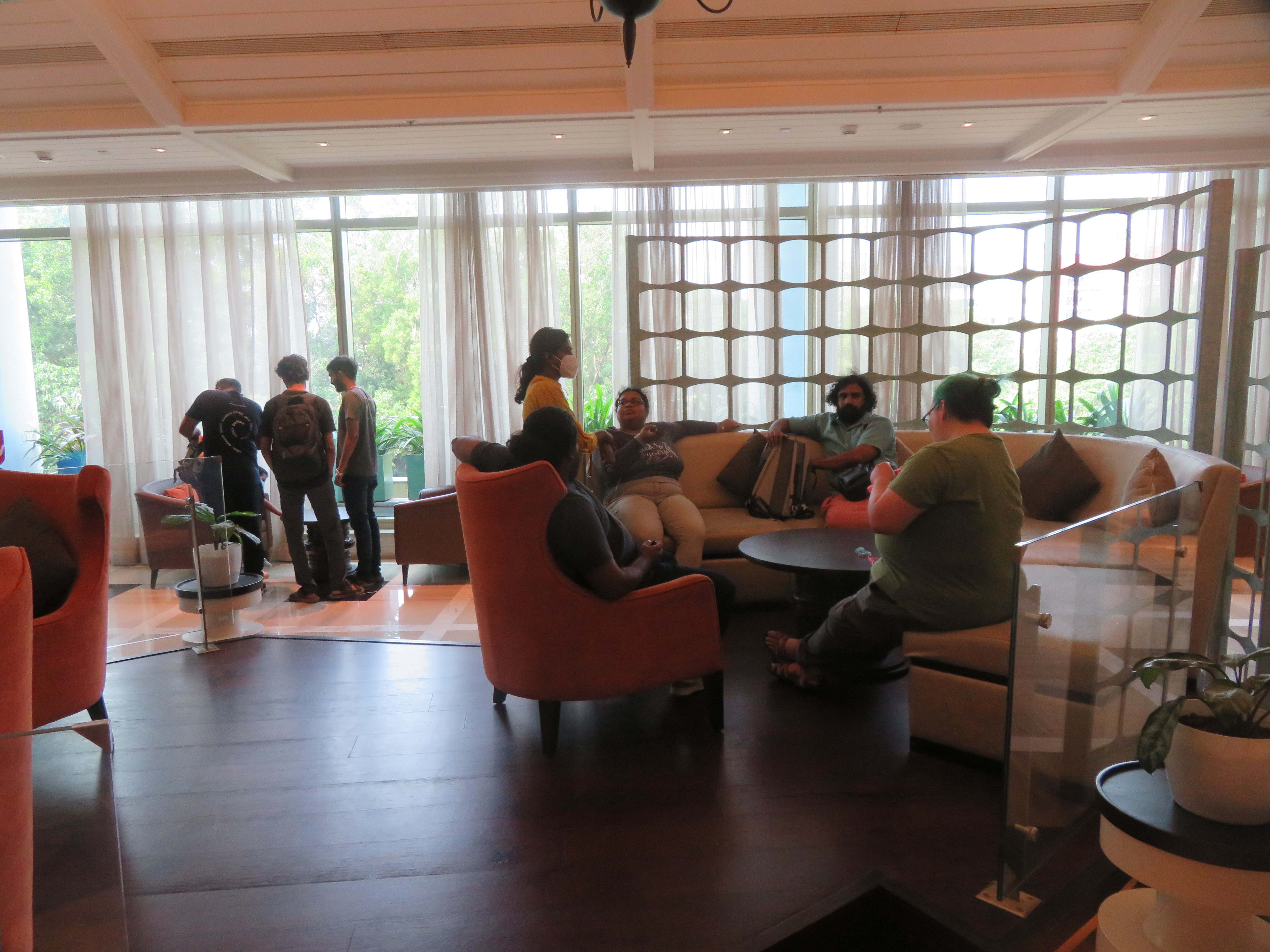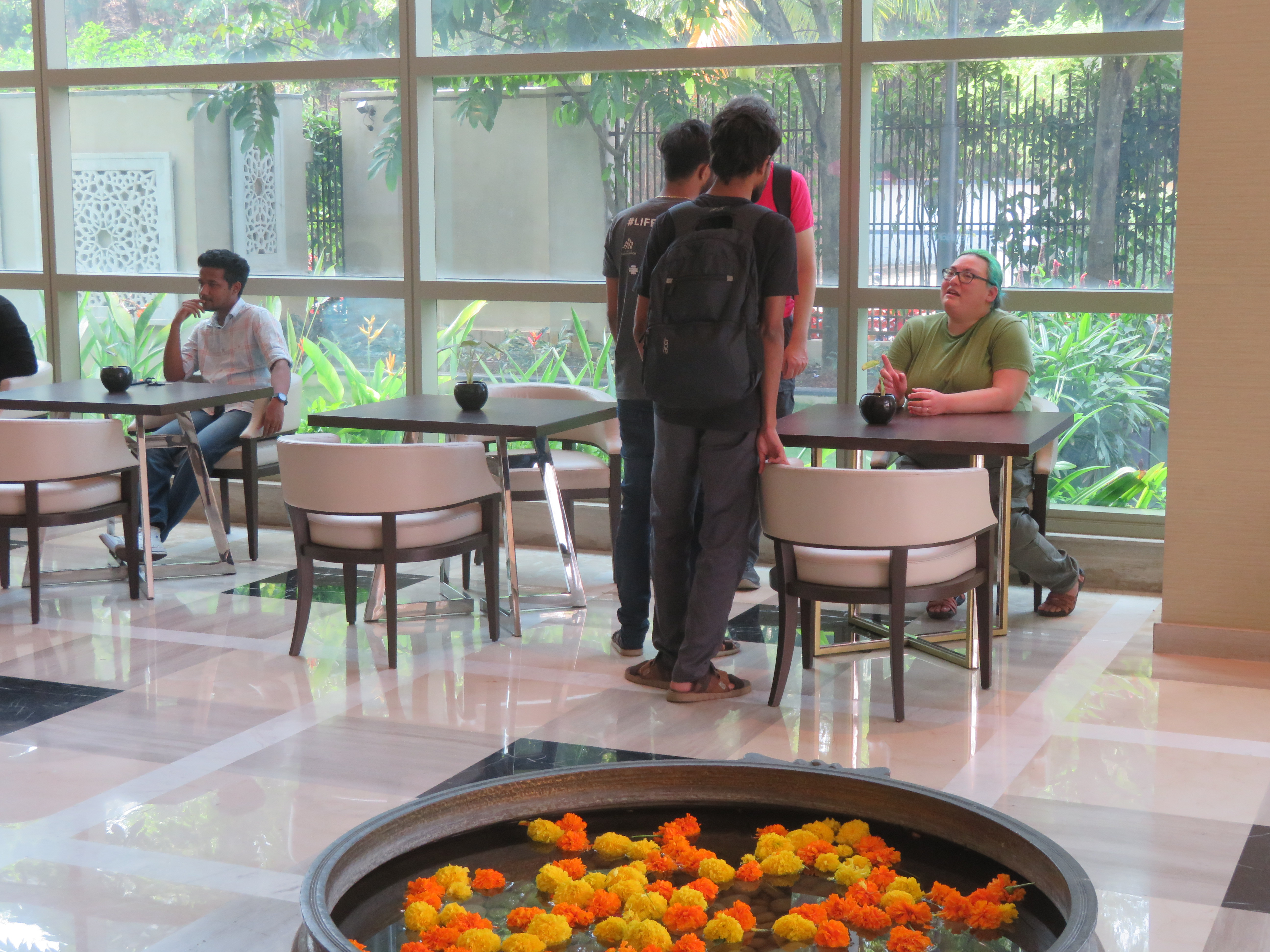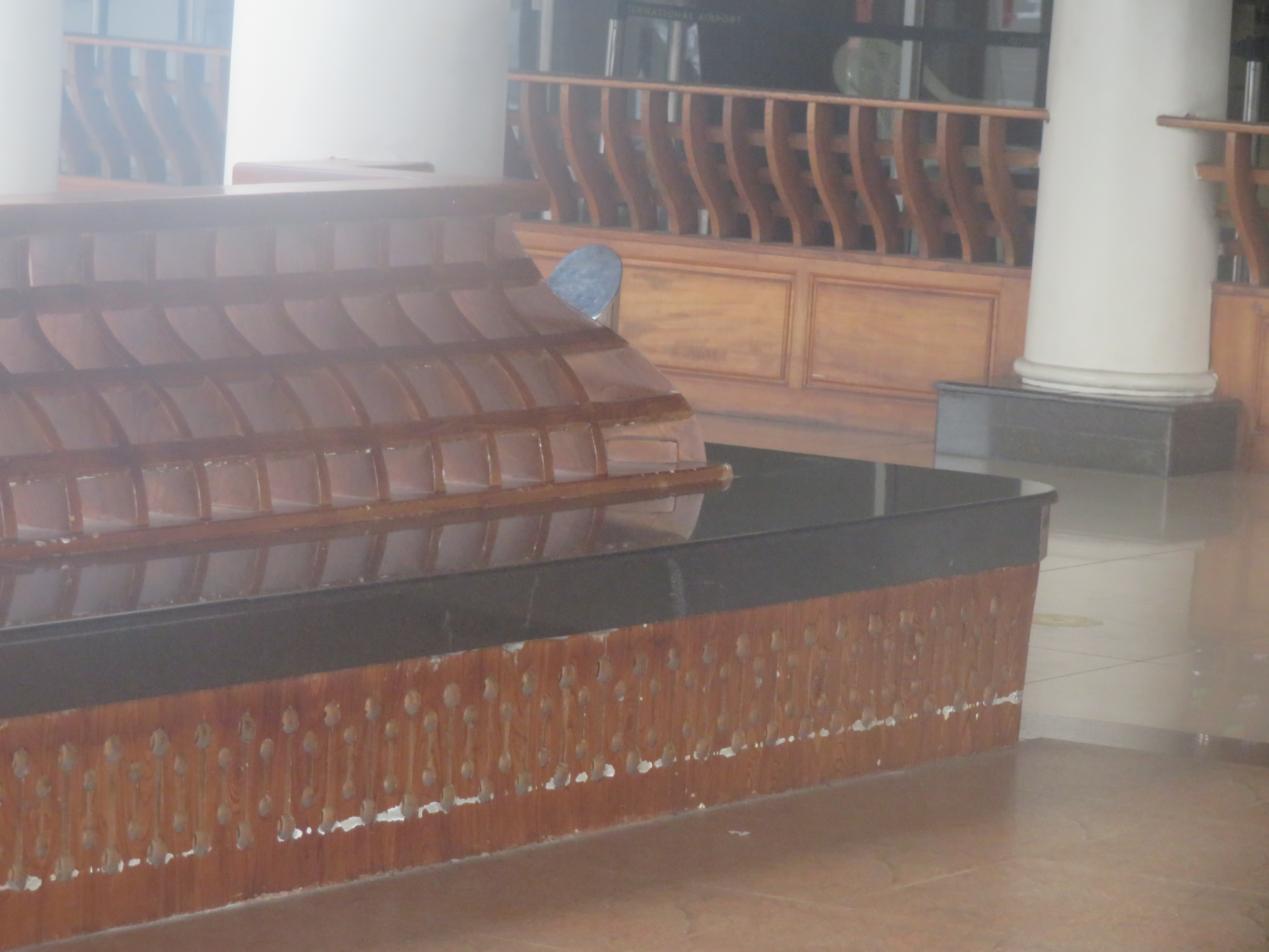 I was at the Domestic terminal, as my flight was Kochi → Bangalore → Amsterdam → Mexico. I arrived quite early, as I left the hotel around 14:00 (because of checkout time); the terminal seems to be active later in the evening. We could not enter the terminal building until it was only four hours to the departure time, so I had the opportunity to walk around, take some photos, and finally sit down and read a bit before entering.