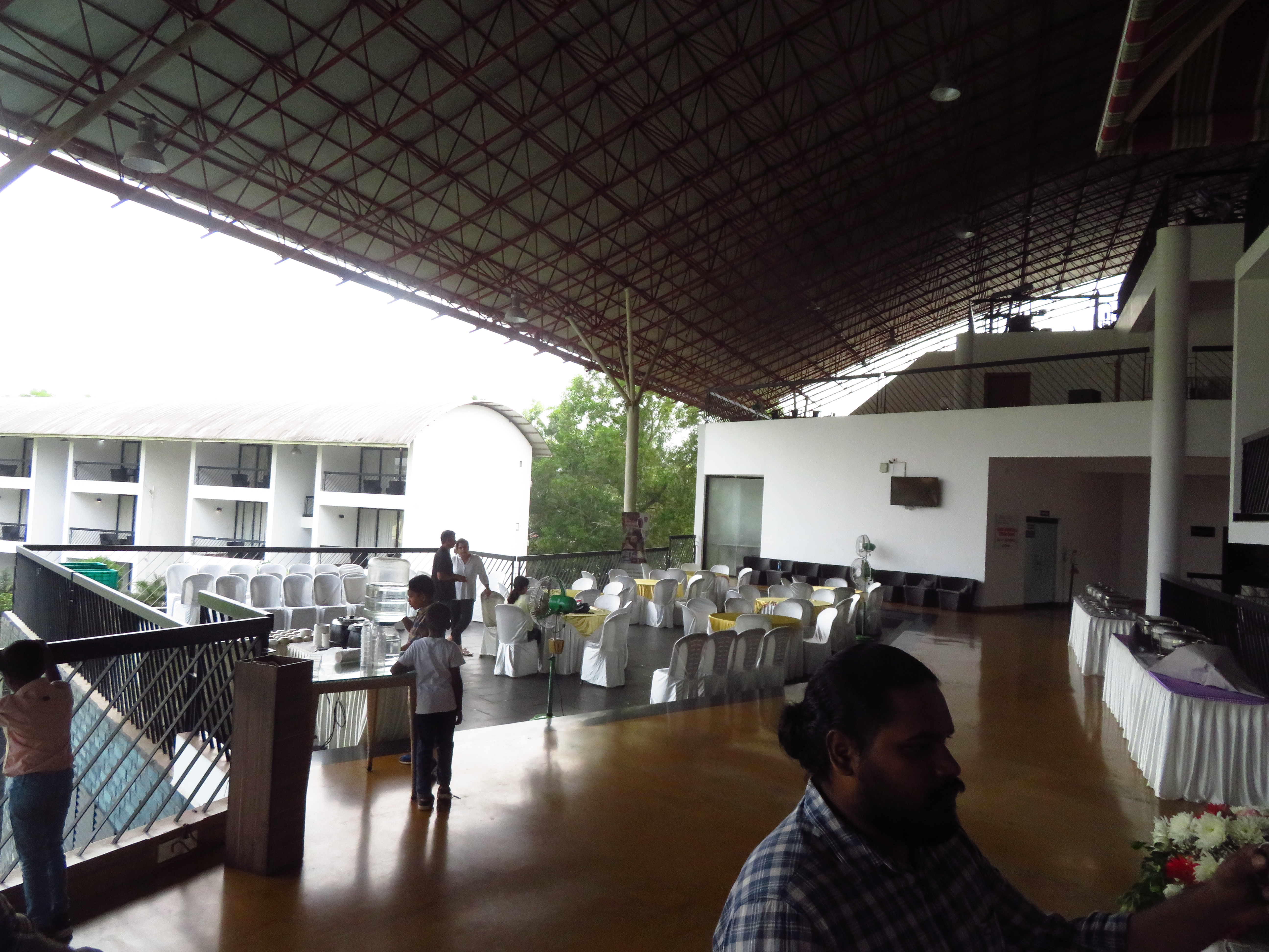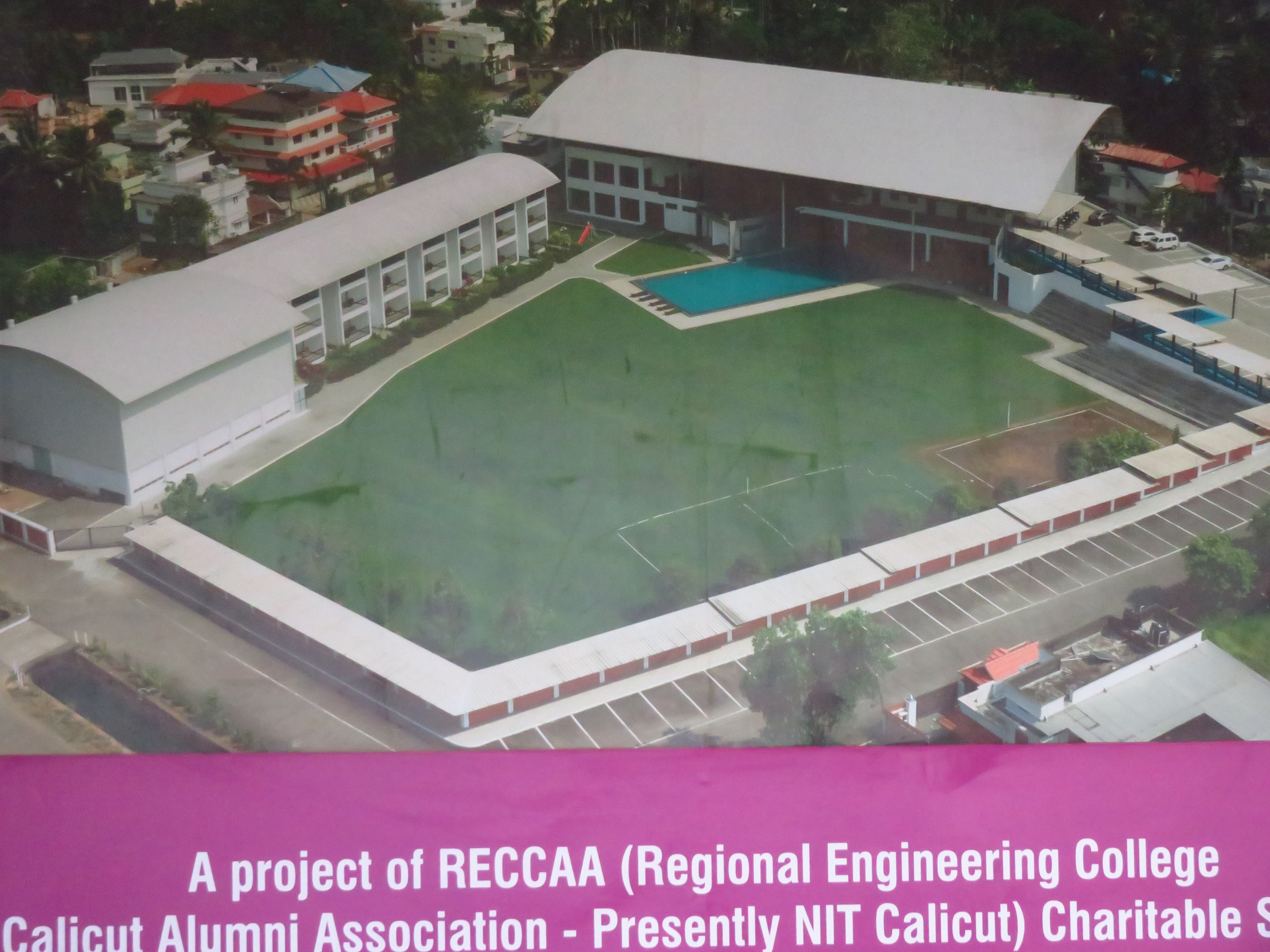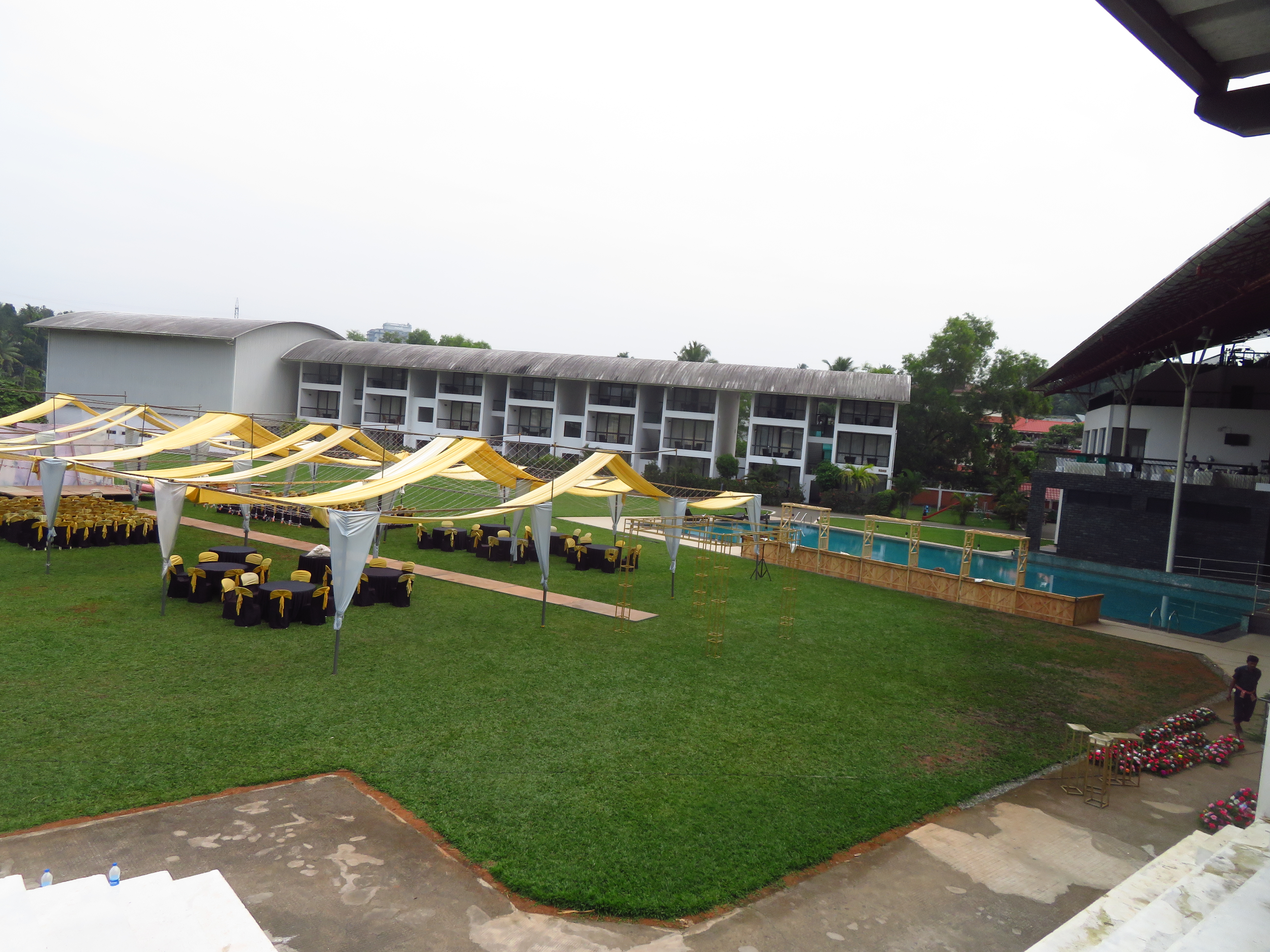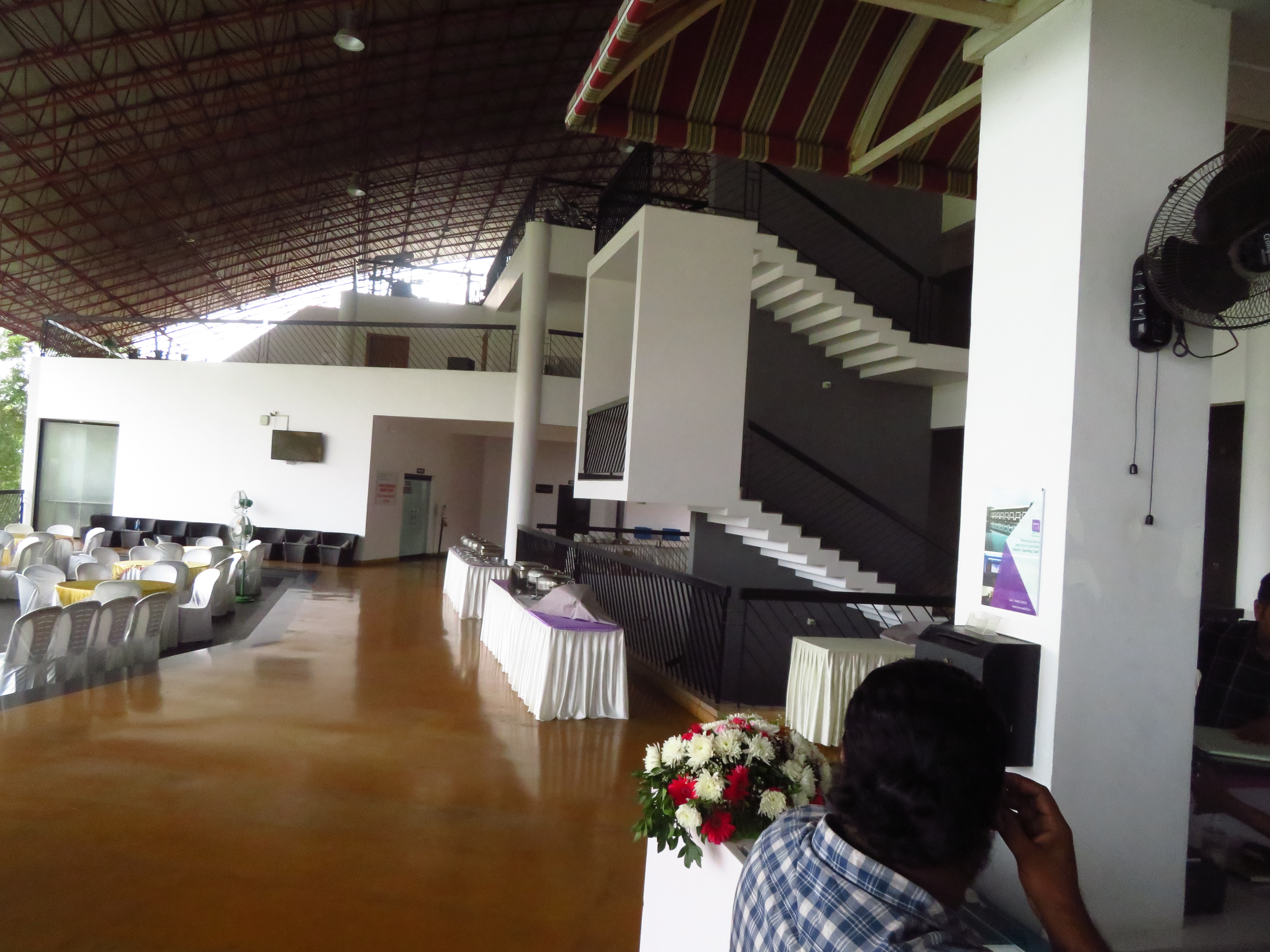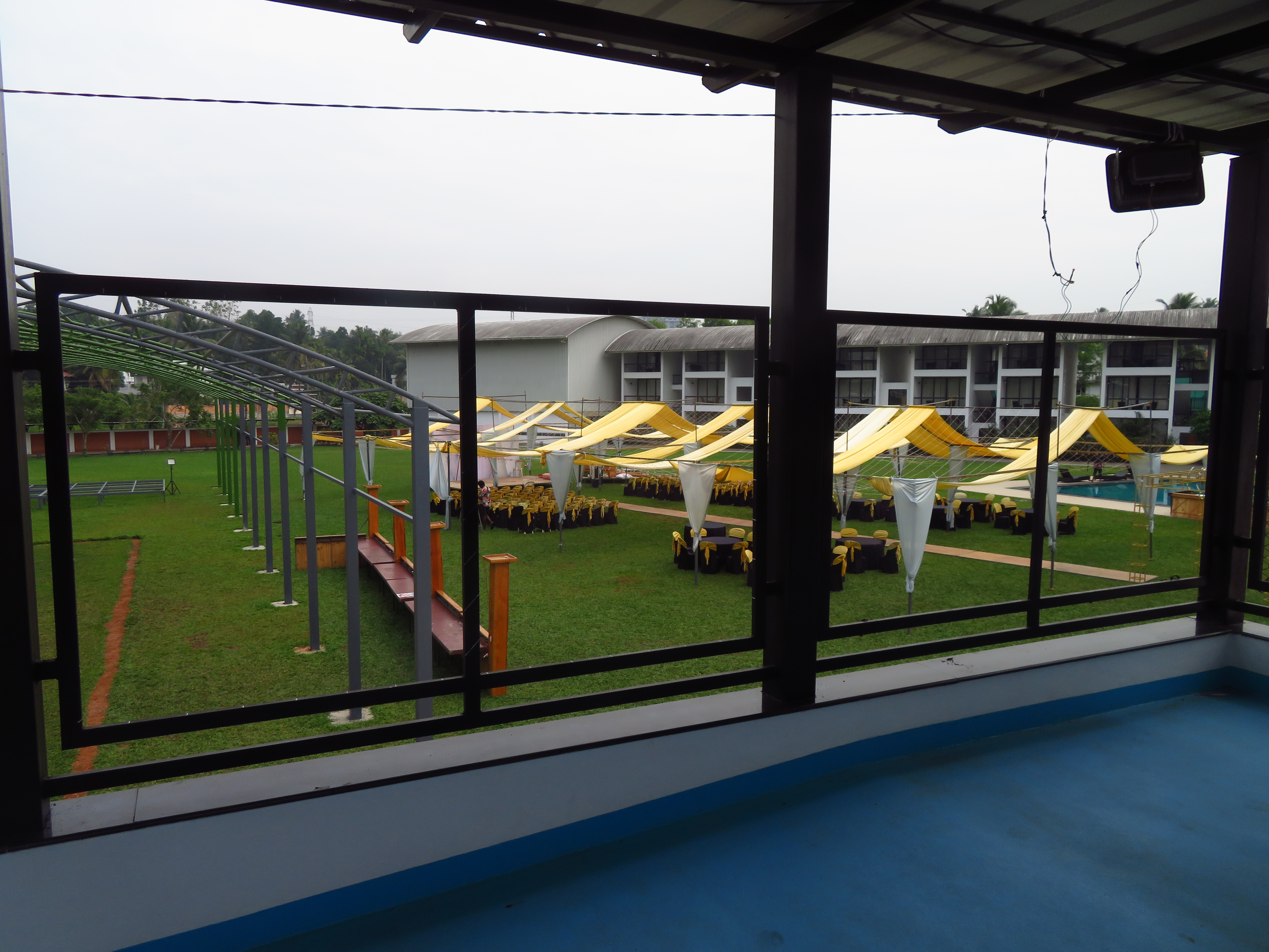 The Regional Engineering College Calicut Alumni Association has a social center quite close to Infopark, and it has three main options for spaces to host the Conference Dinner: Two adjacent areas in the garden by its pool and one overlooking them, inside the building.