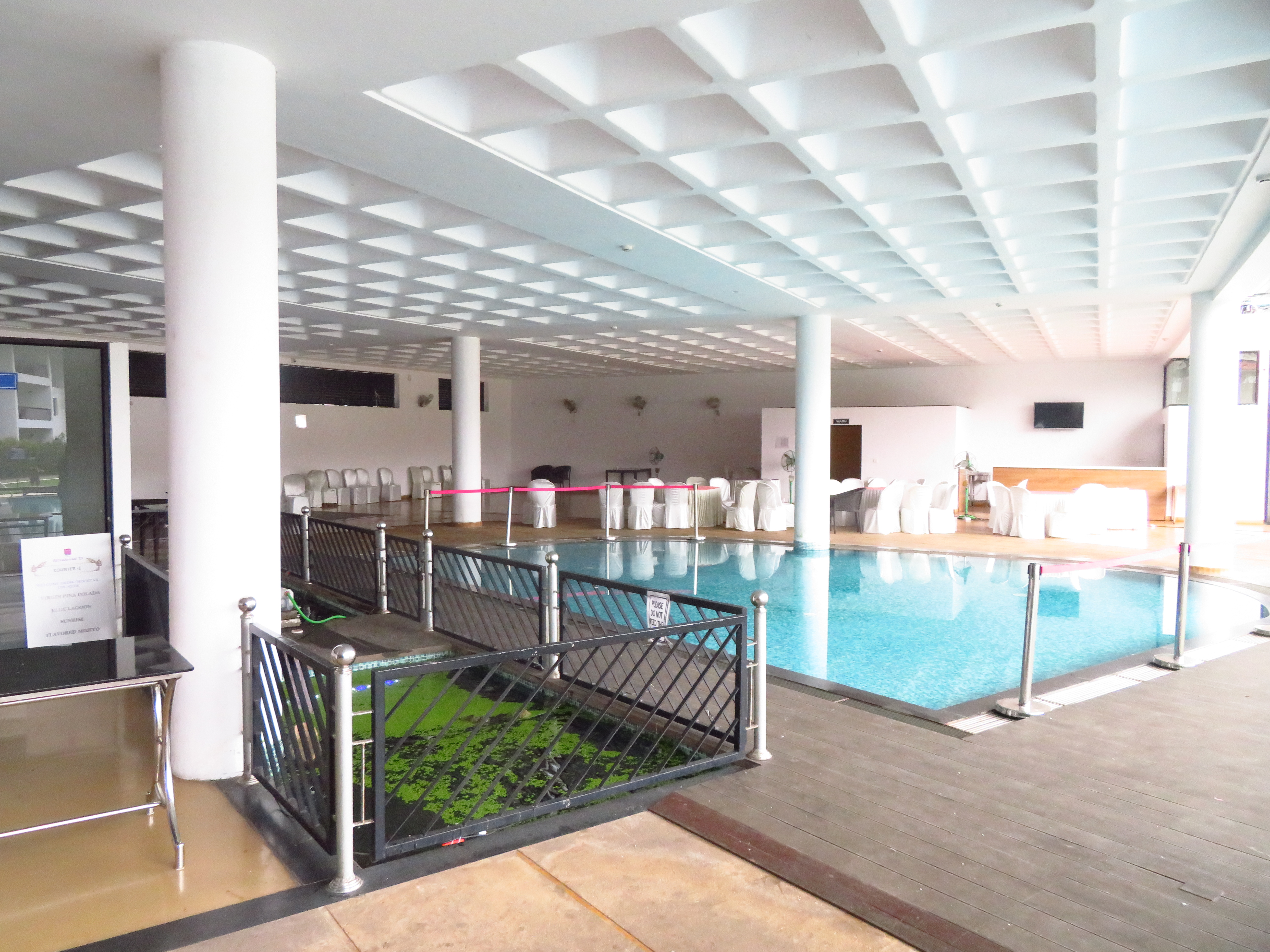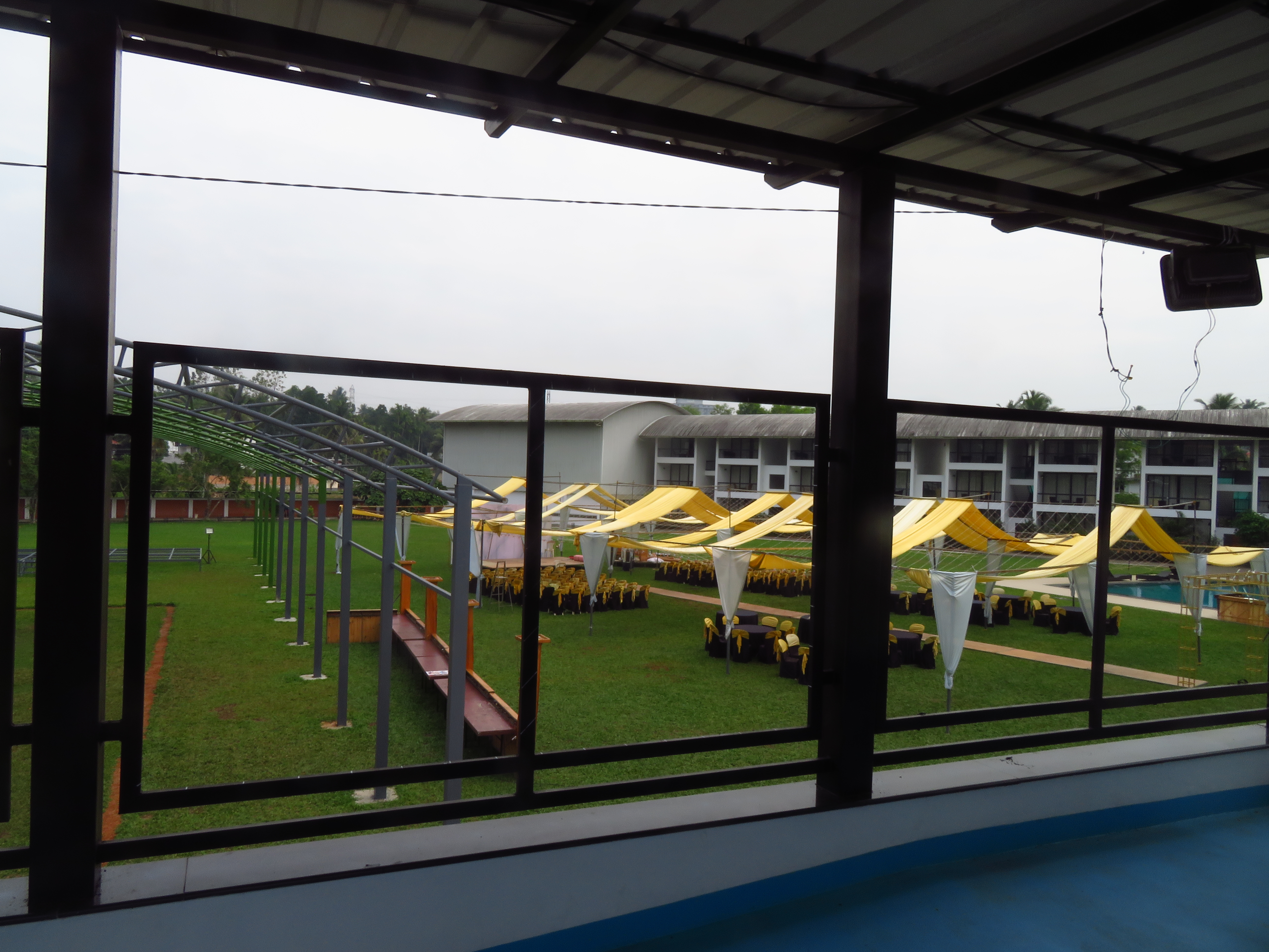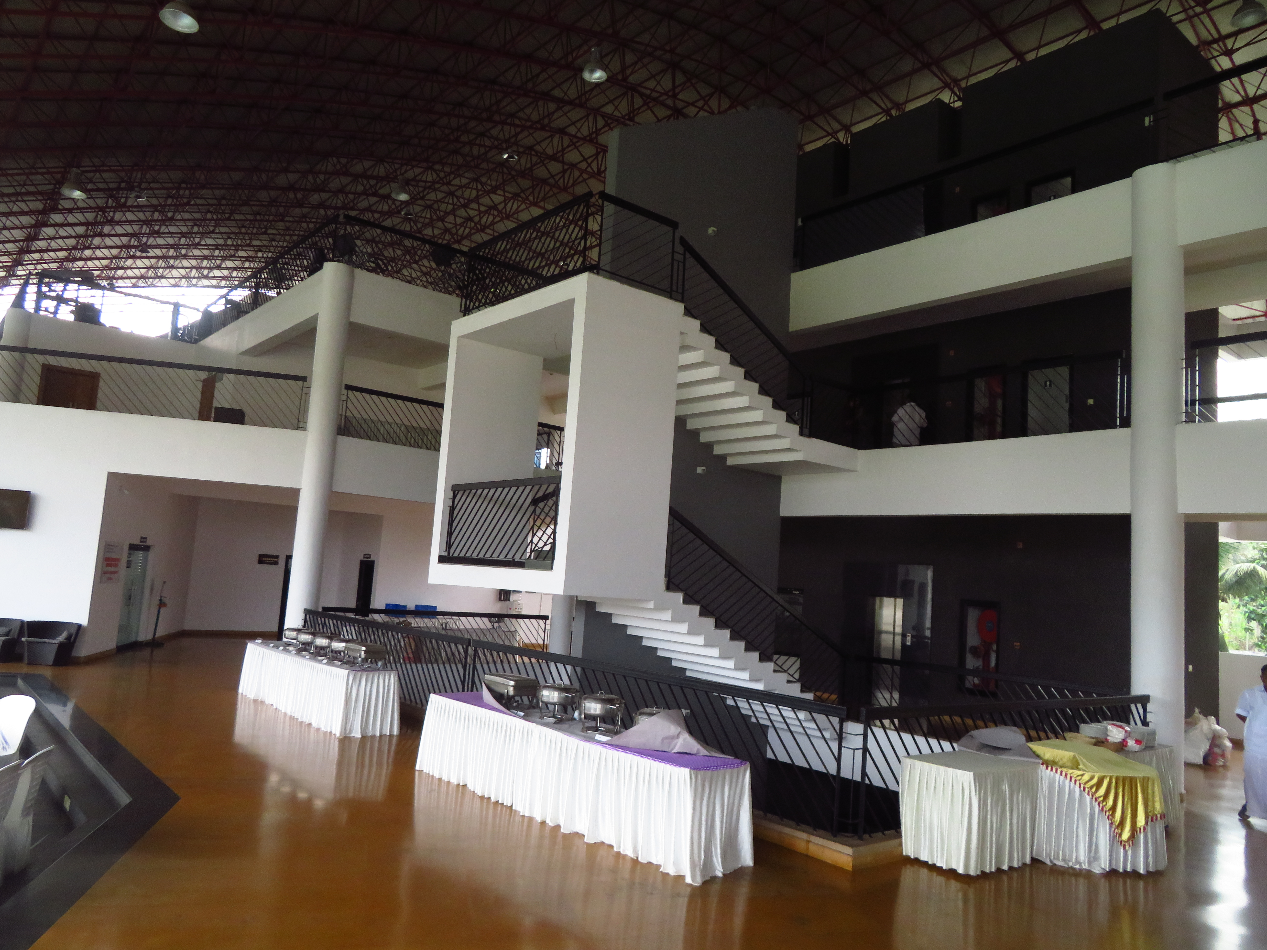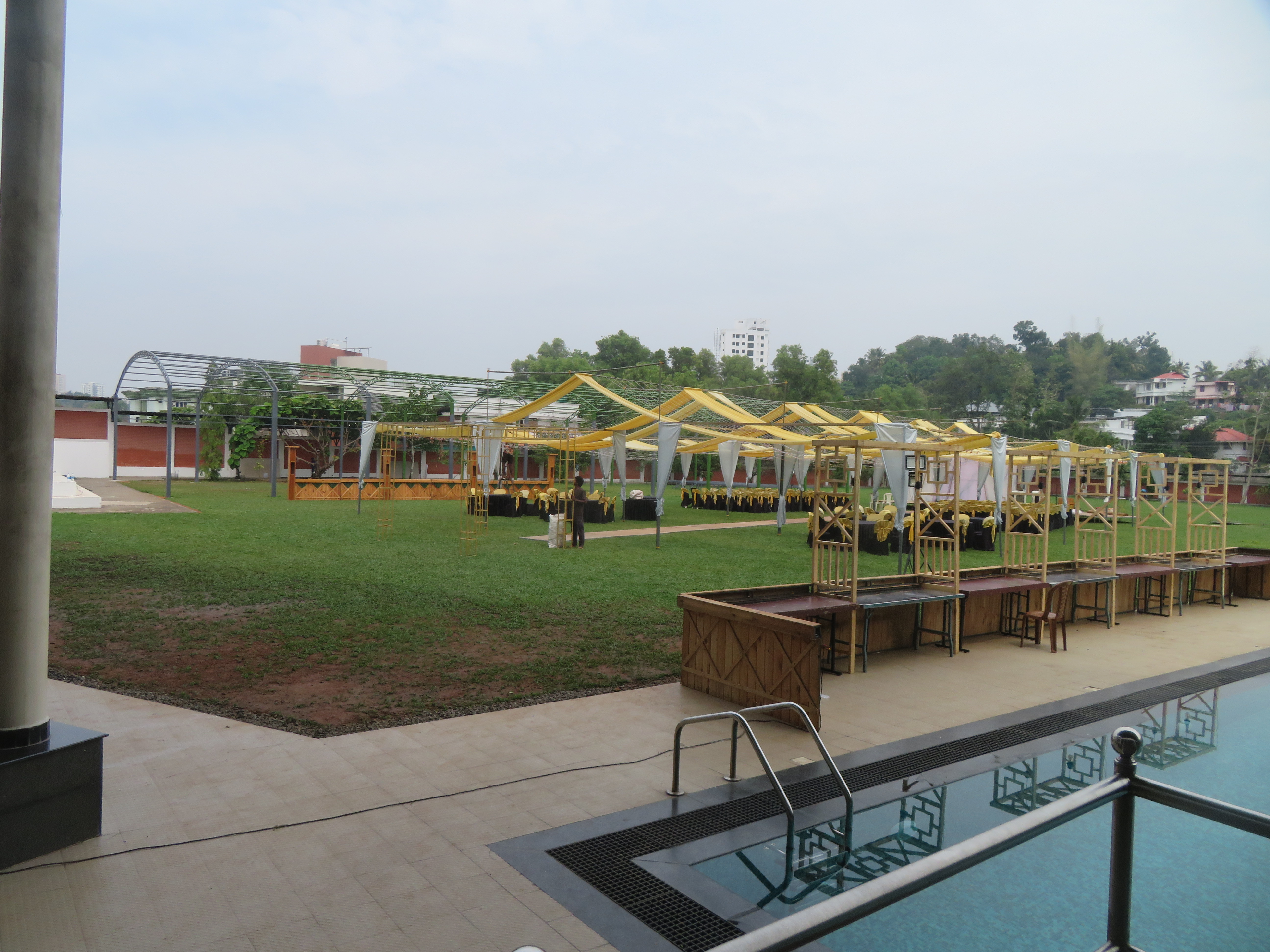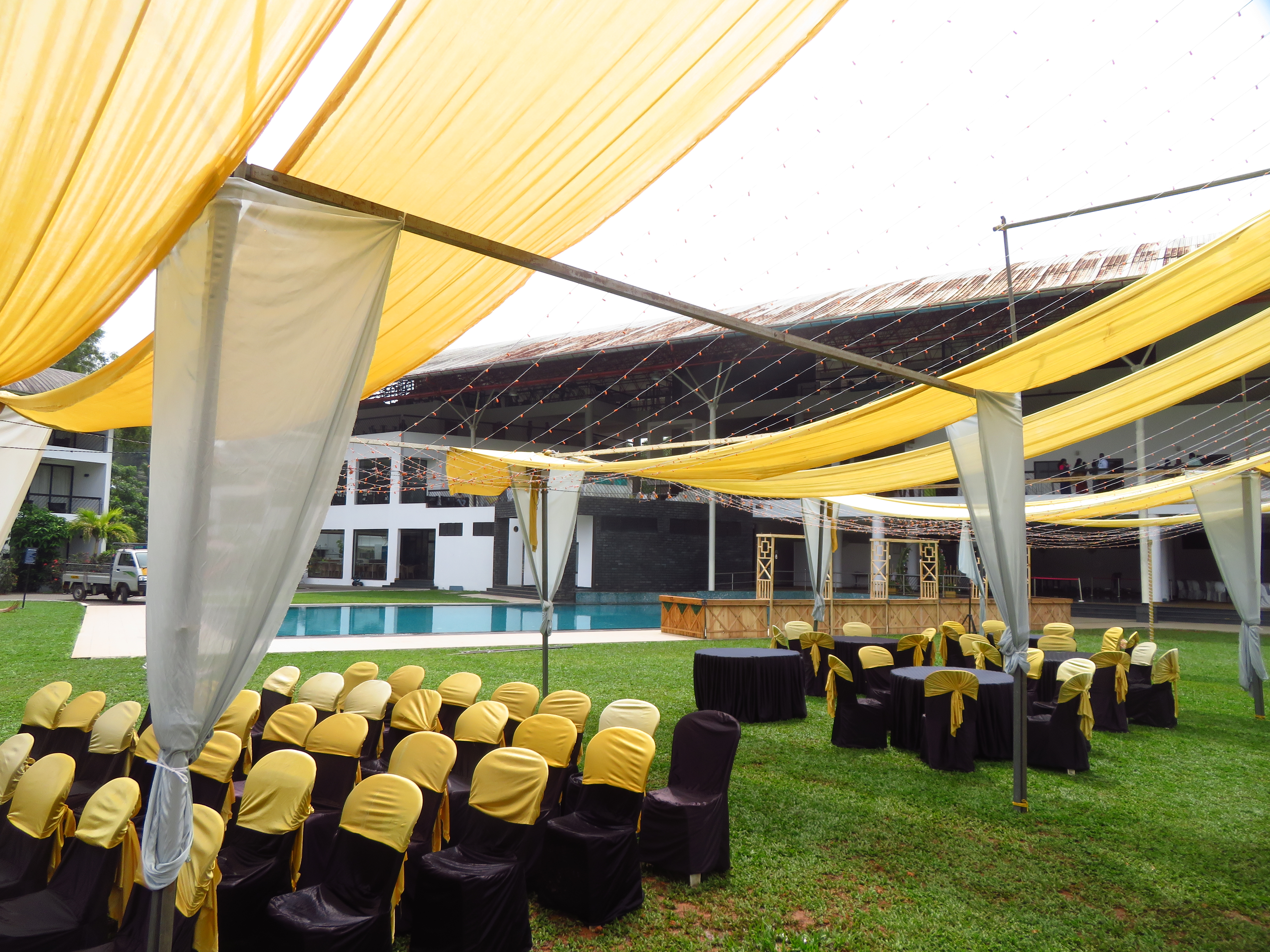 The Regional Engineering College Calicut Alumni Association has a social center quite close to Infopark, and it has three main options for spaces to host the Conference Dinner: Two adjacent areas in the garden by its pool and one overlooking them, inside the building.