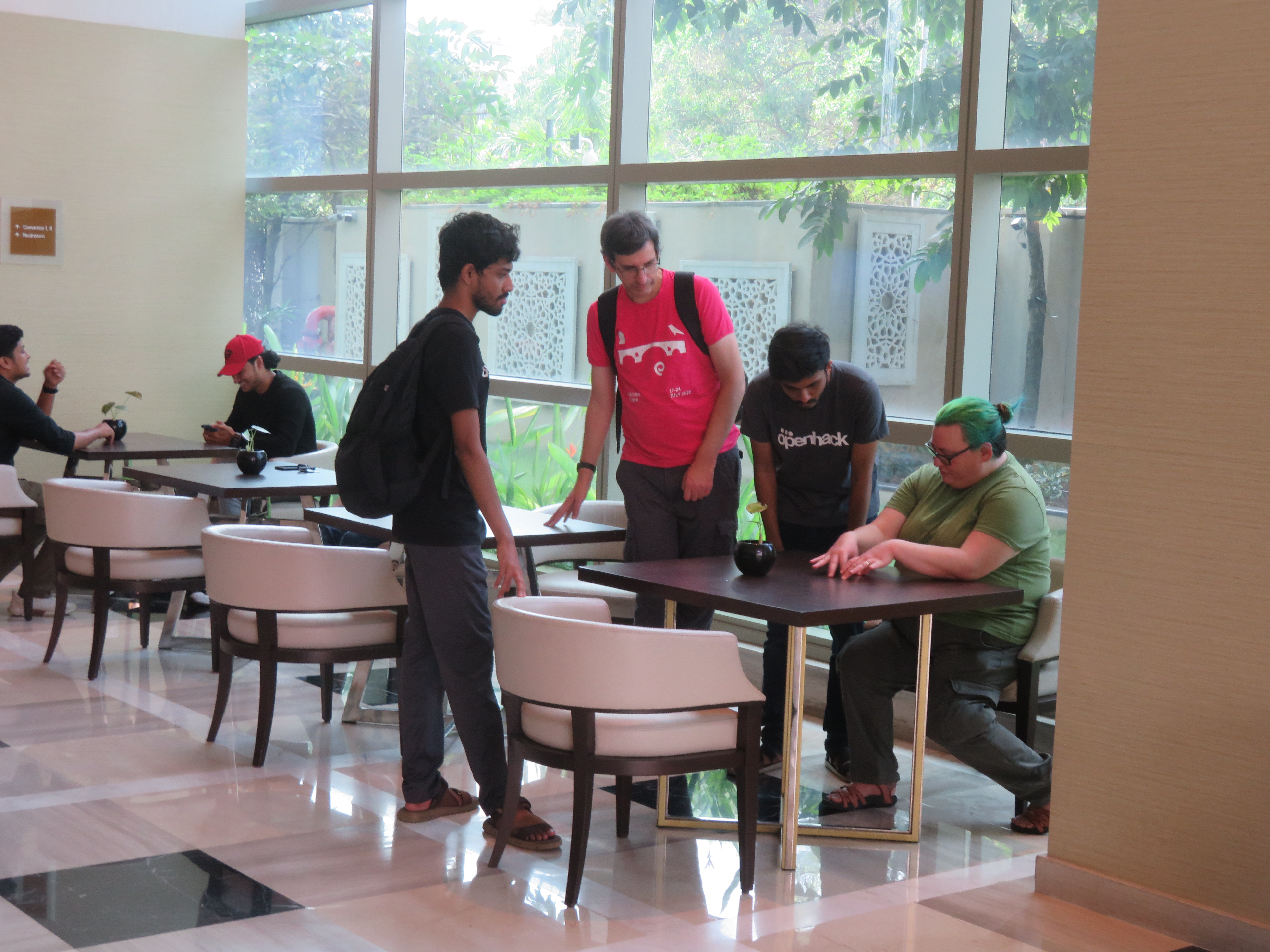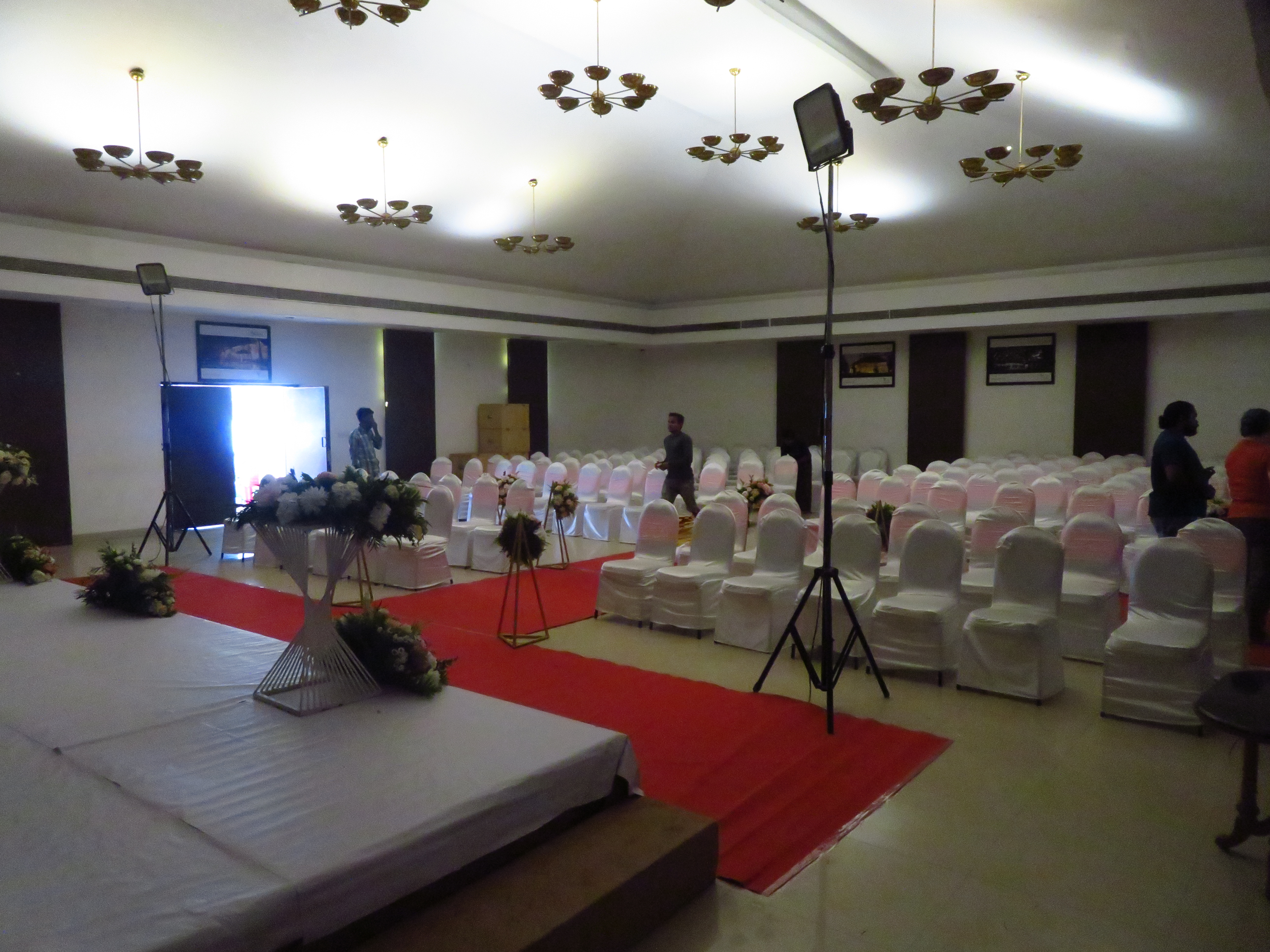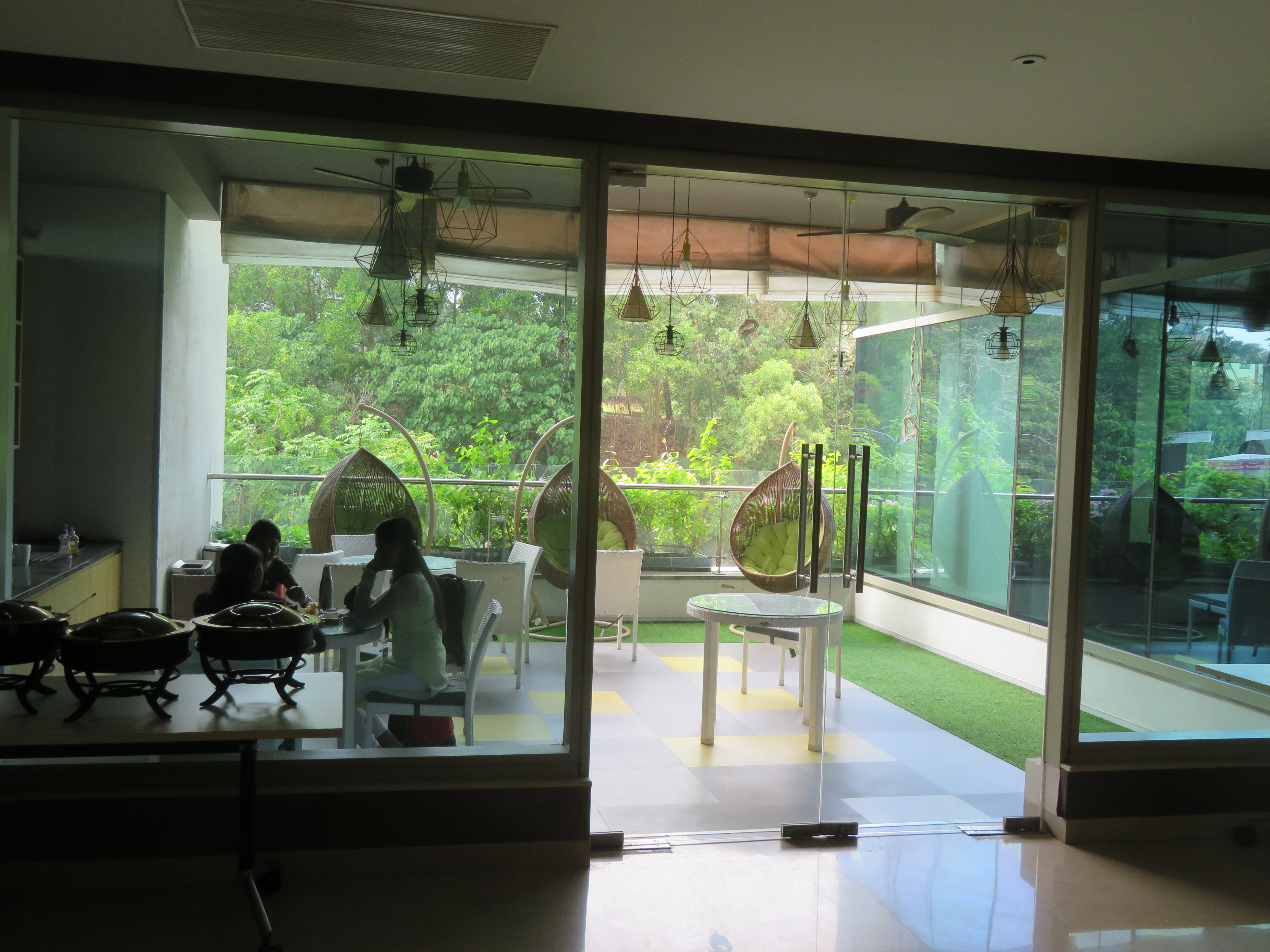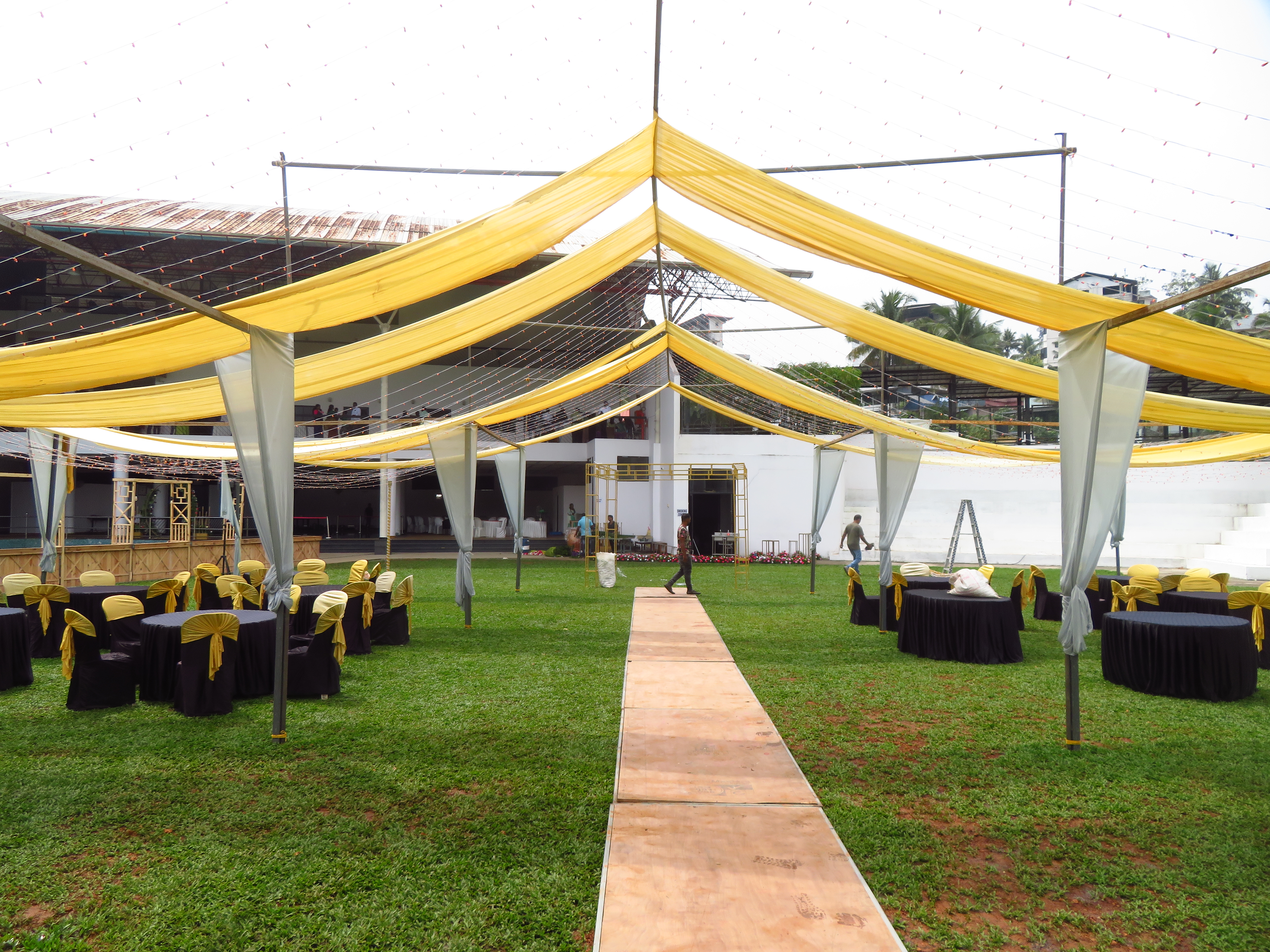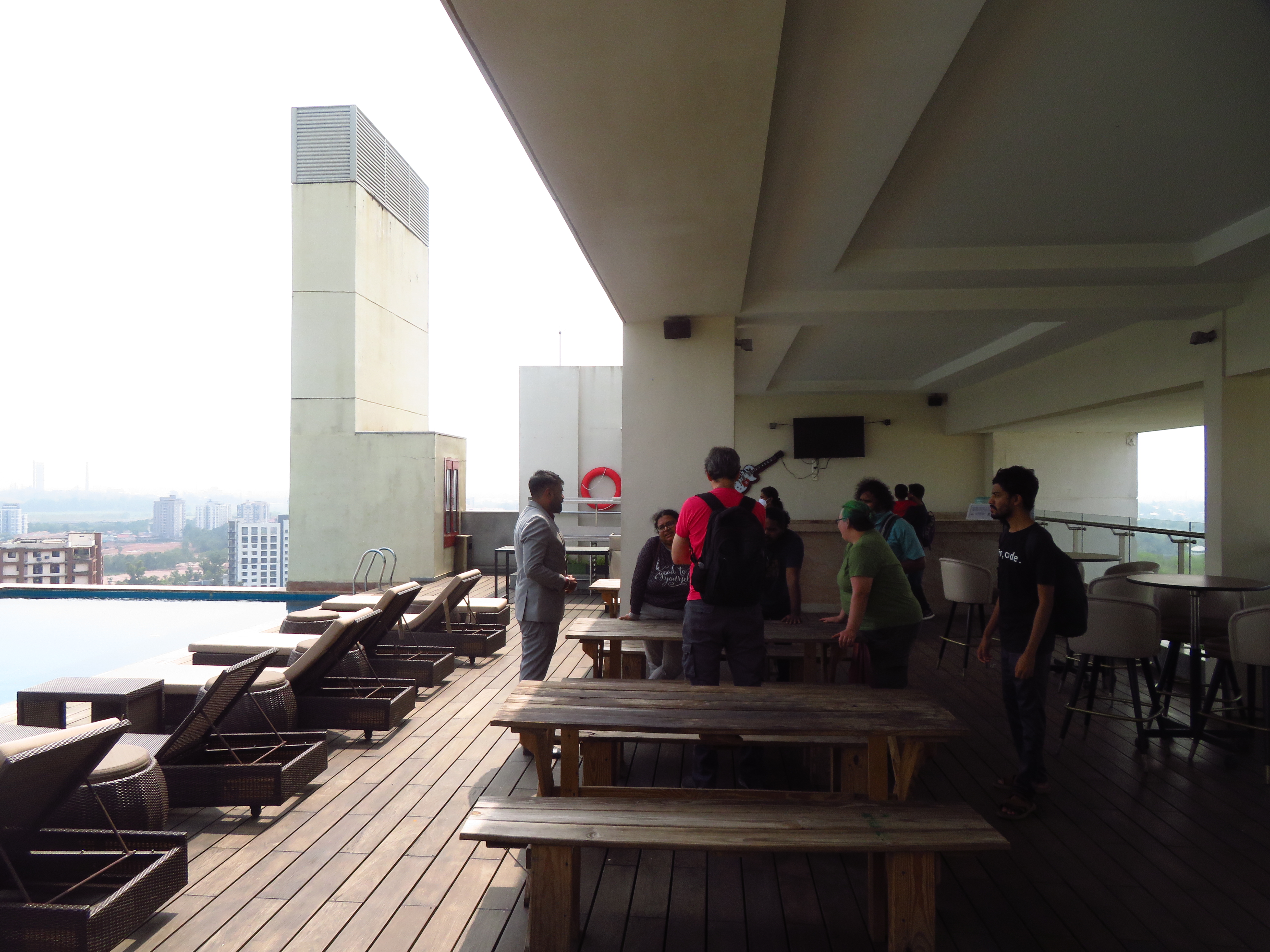 The Regional Engineering College Calicut Alumni Association has a social center quite close to Infopark, and it has three main options for spaces to host the Conference Dinner: Two adjacent areas in the garden by its pool and one overlooking them, inside the building.