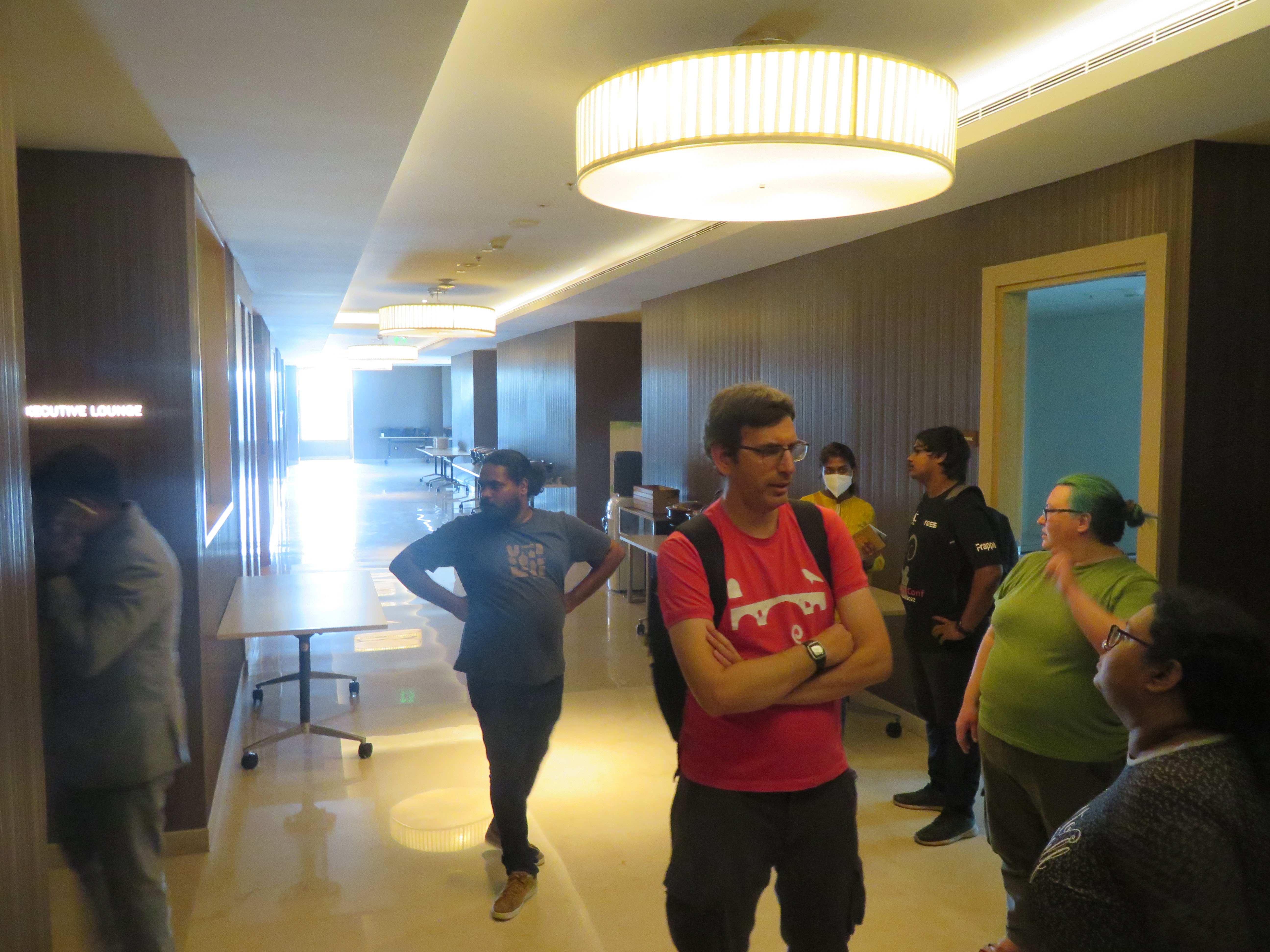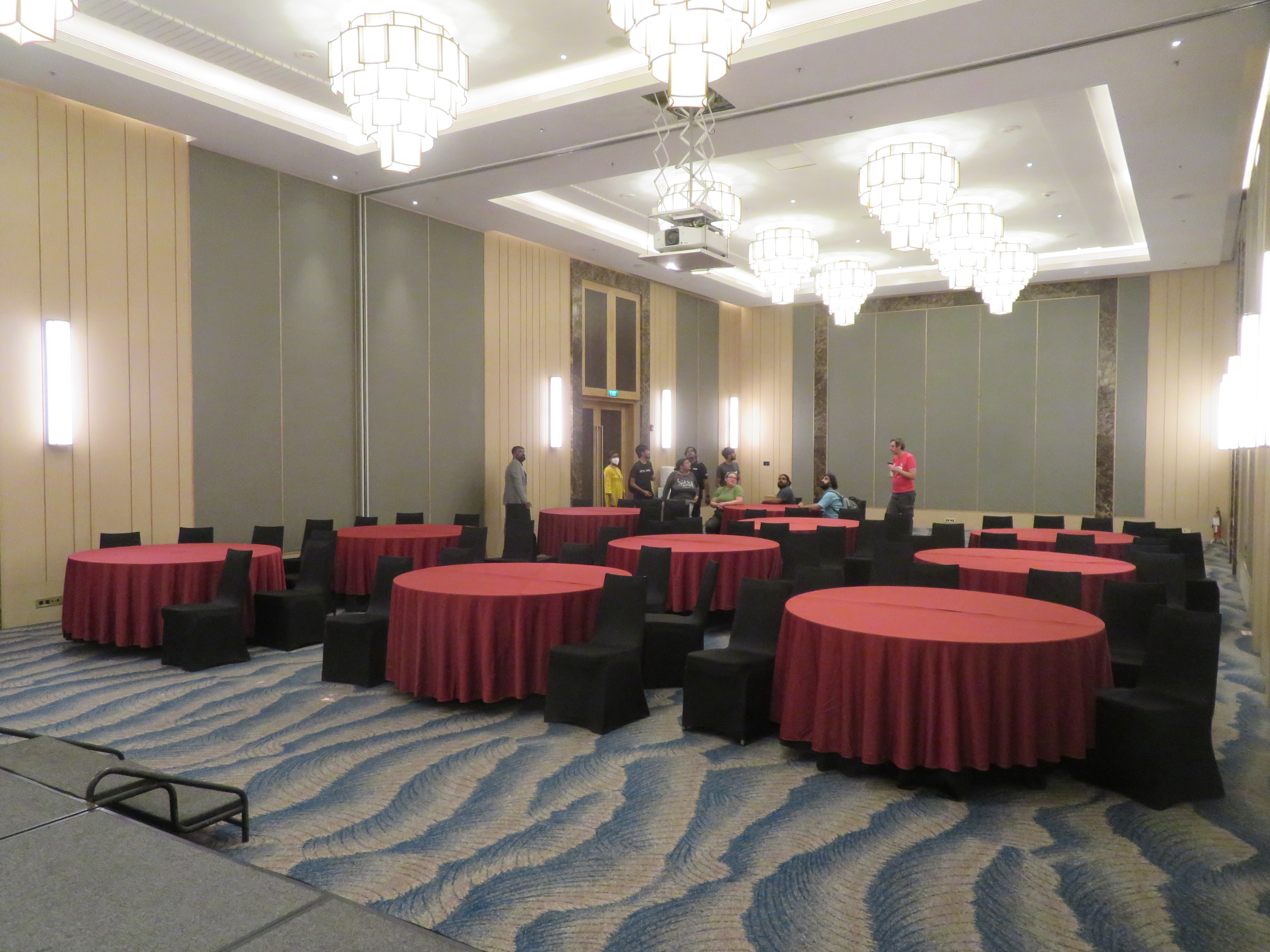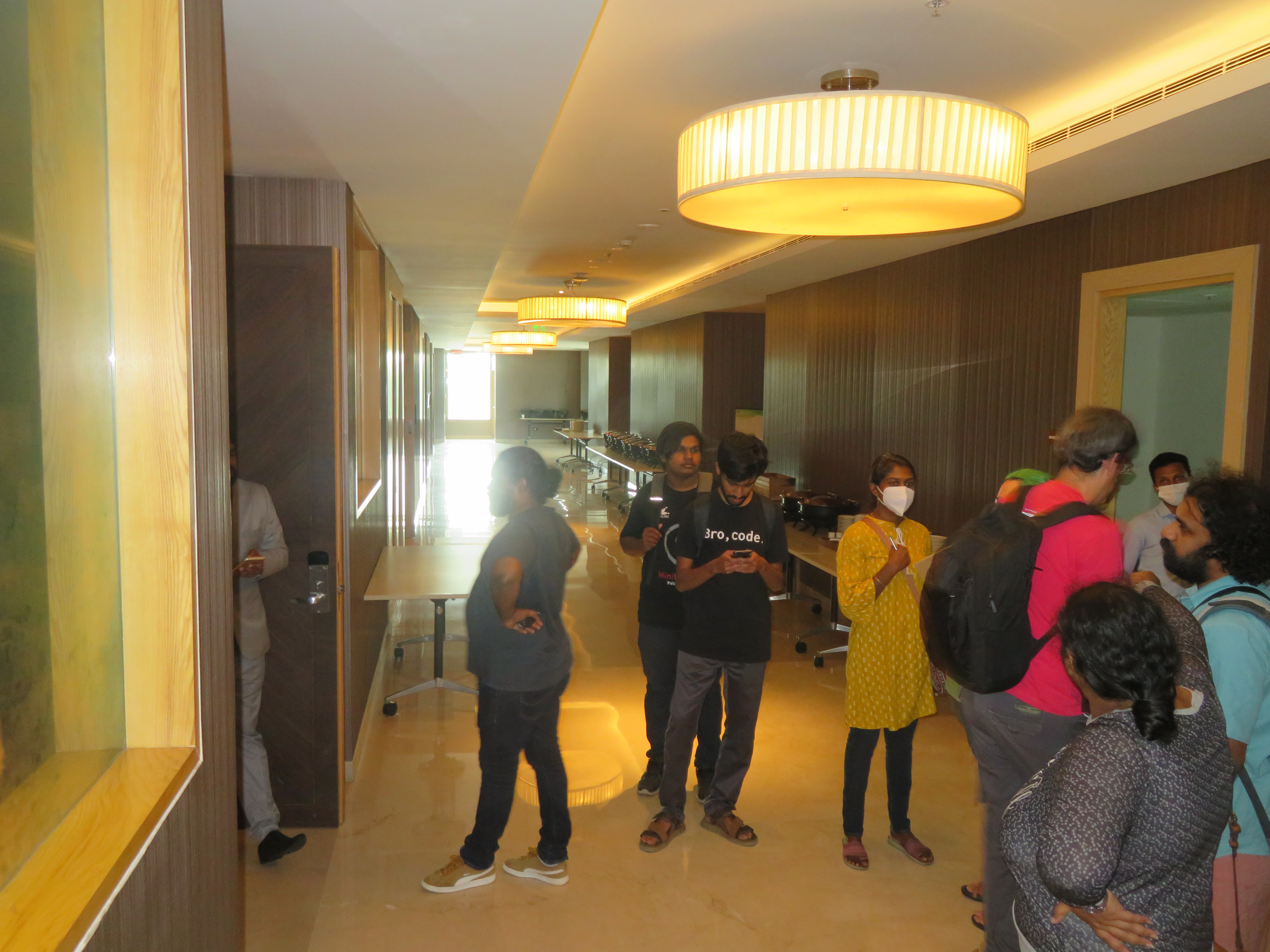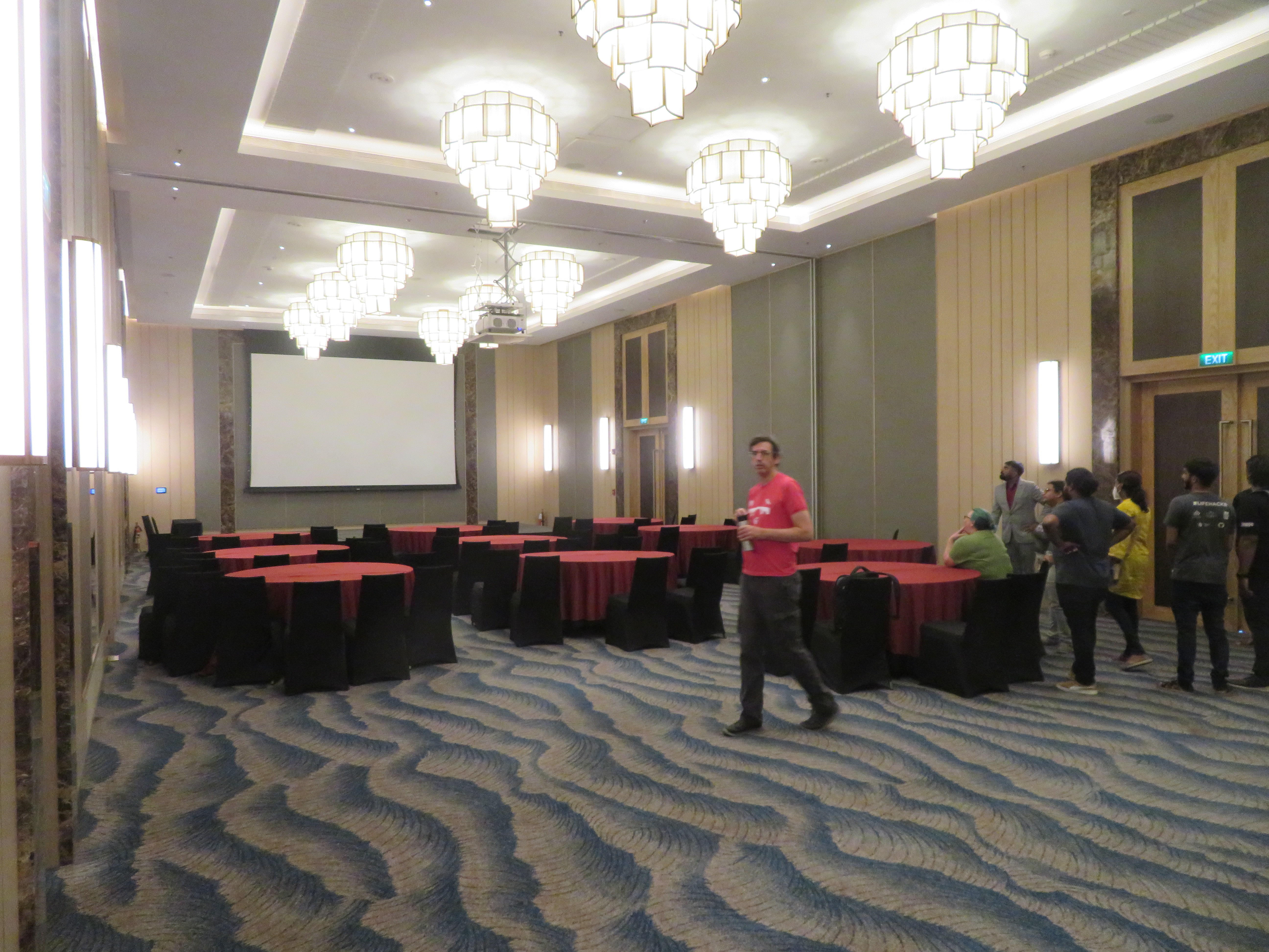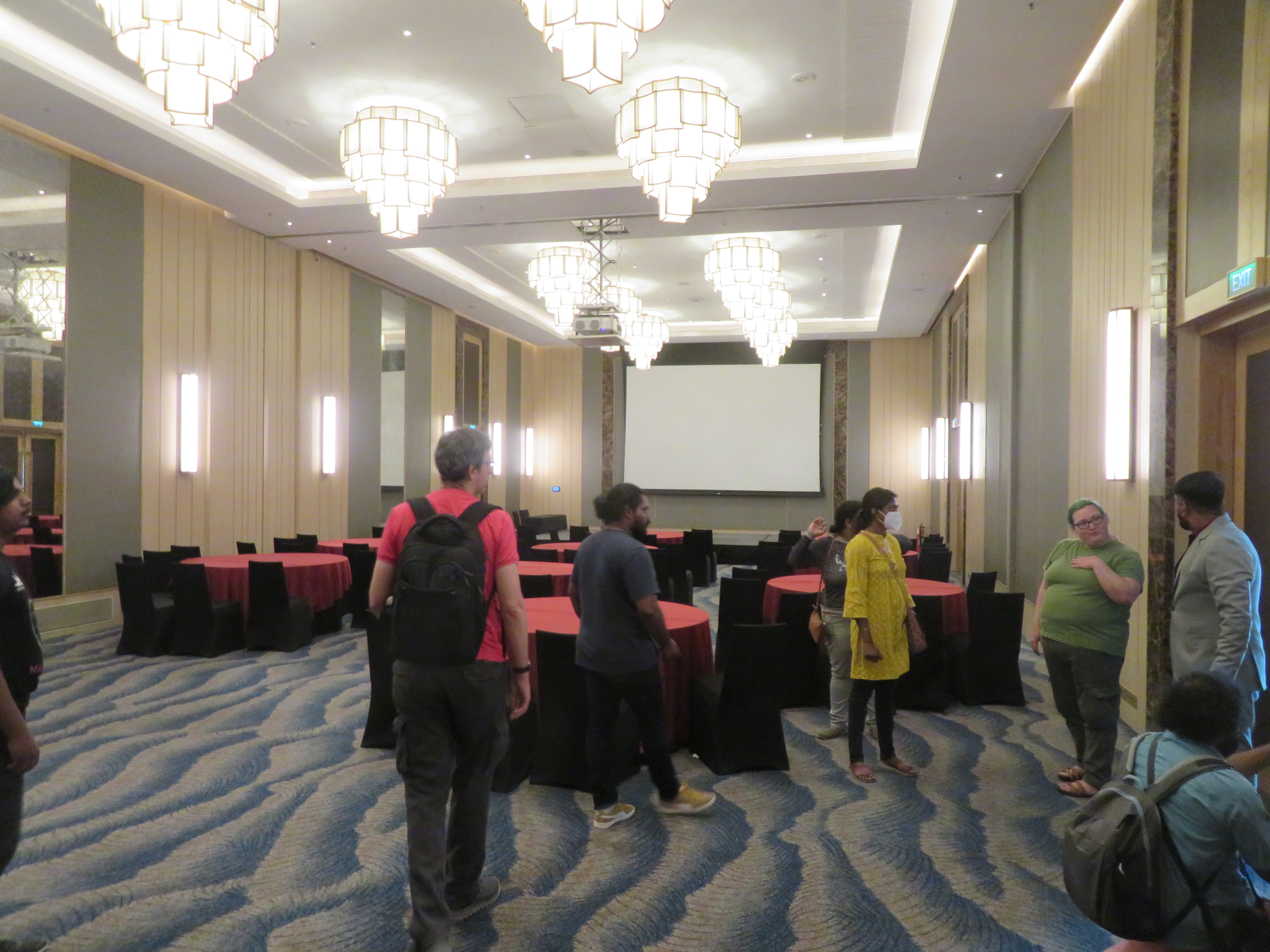 The Infopark auditorium is ~5–10 minutes walking uphill from the hotel. We were discussing including an umbrella as part of the swag, so that people can shade from either rain or sun.